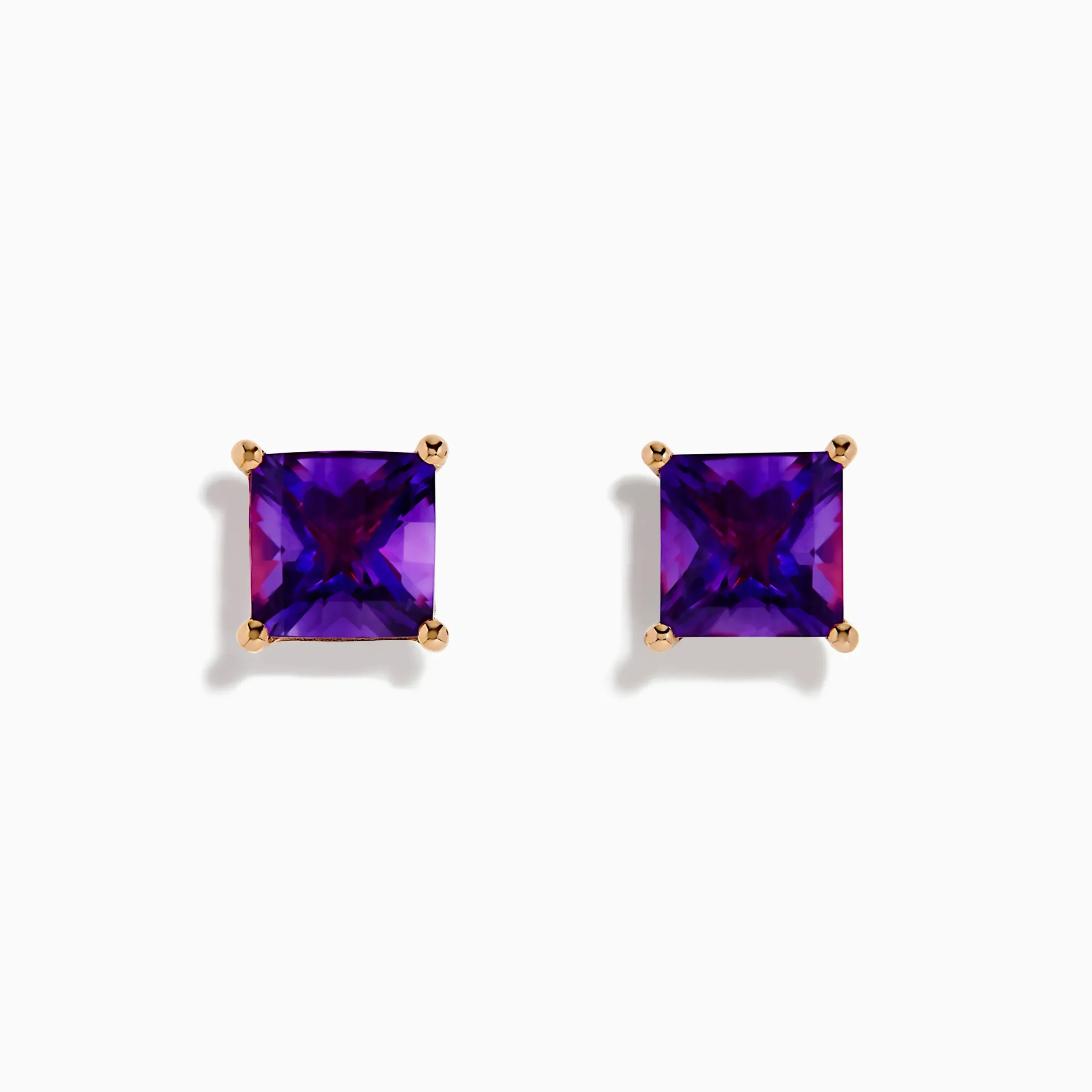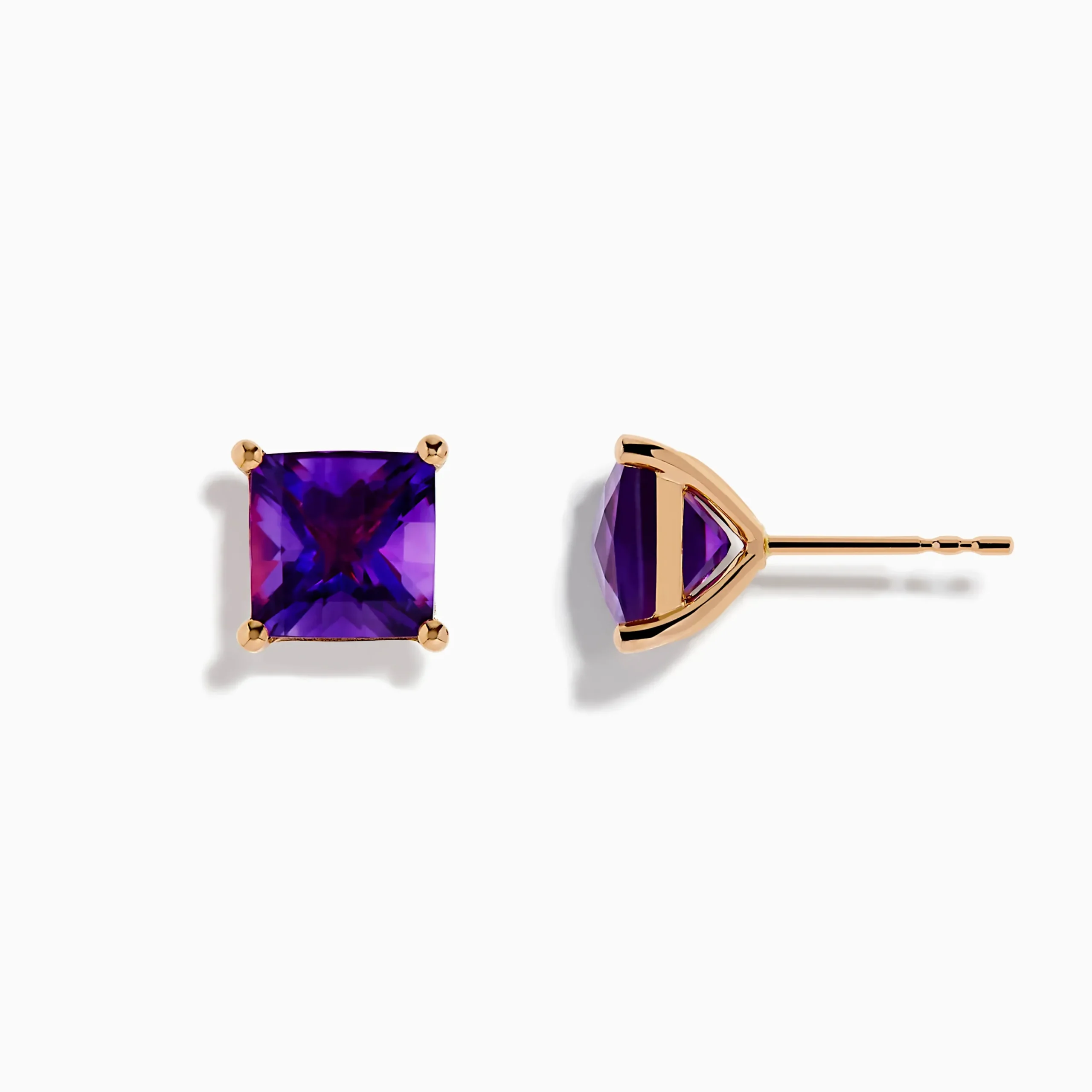 Metal:14K Gold Metal Color:RoseStone: Square Amethyst 4.714K Rose Gold Amethyst Stud Earrings