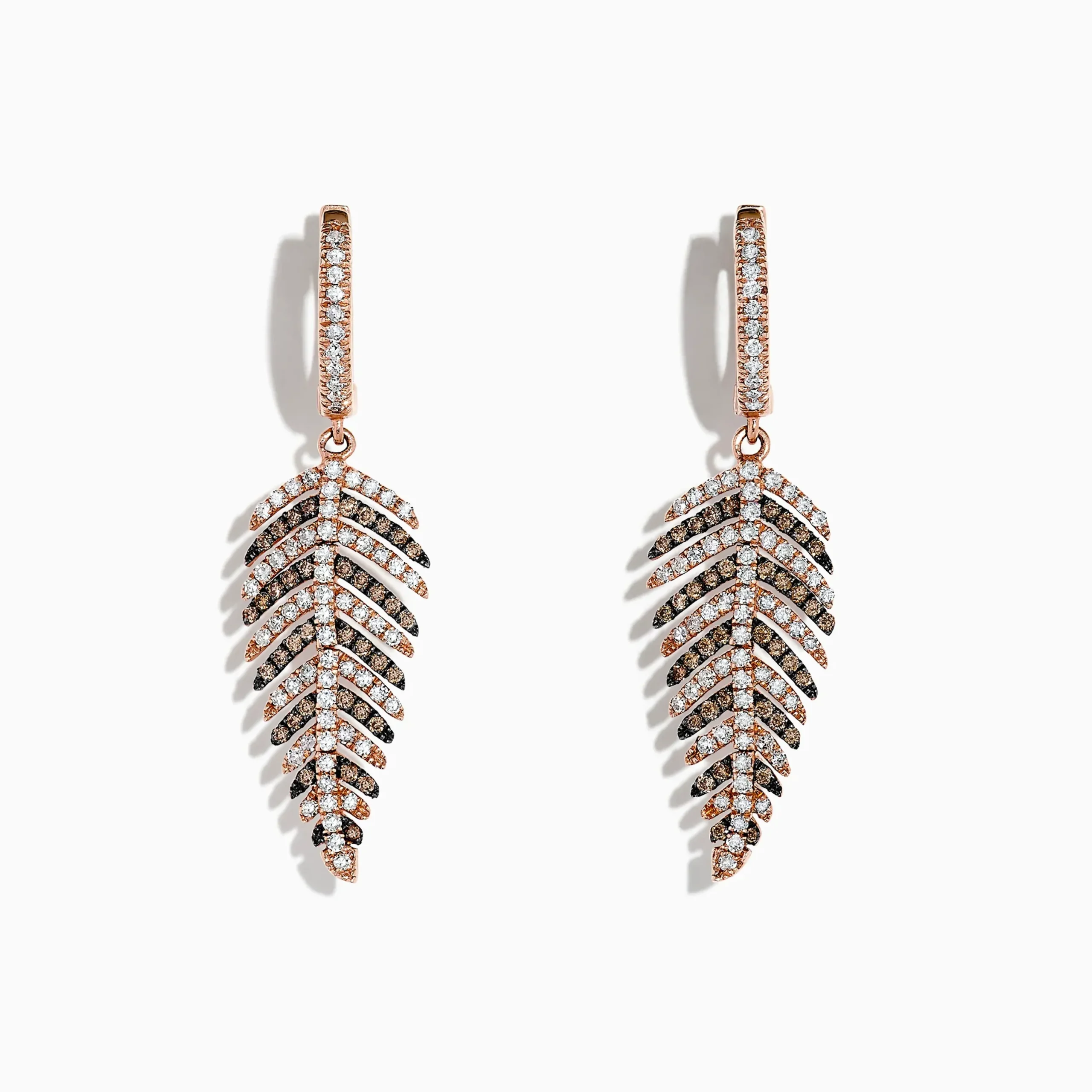 Effy Espresso 14K Rose Gold Espresso & White Diamond Leaf Earrings, 1.05 TCW