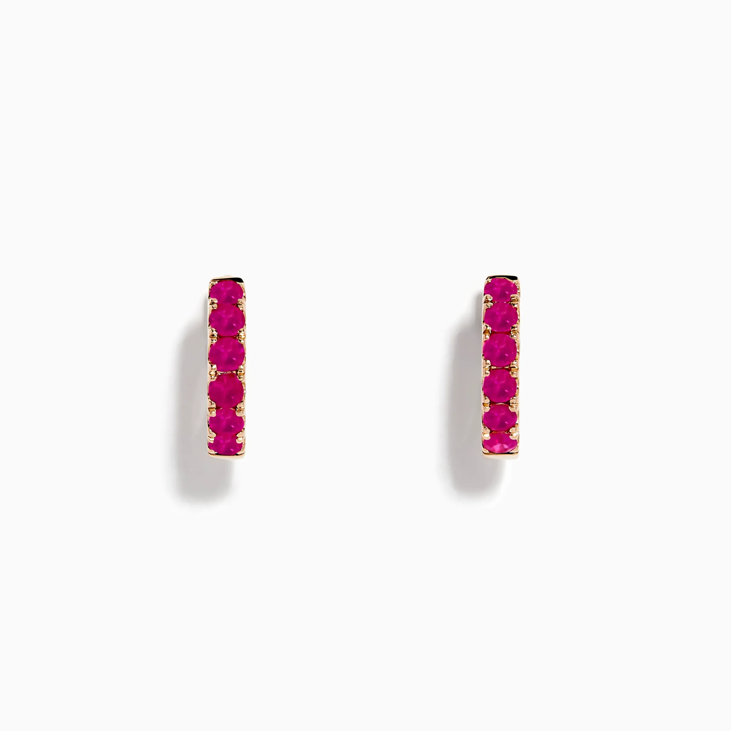 14K Rose Gold Pink Sapphire Huggie Earrings