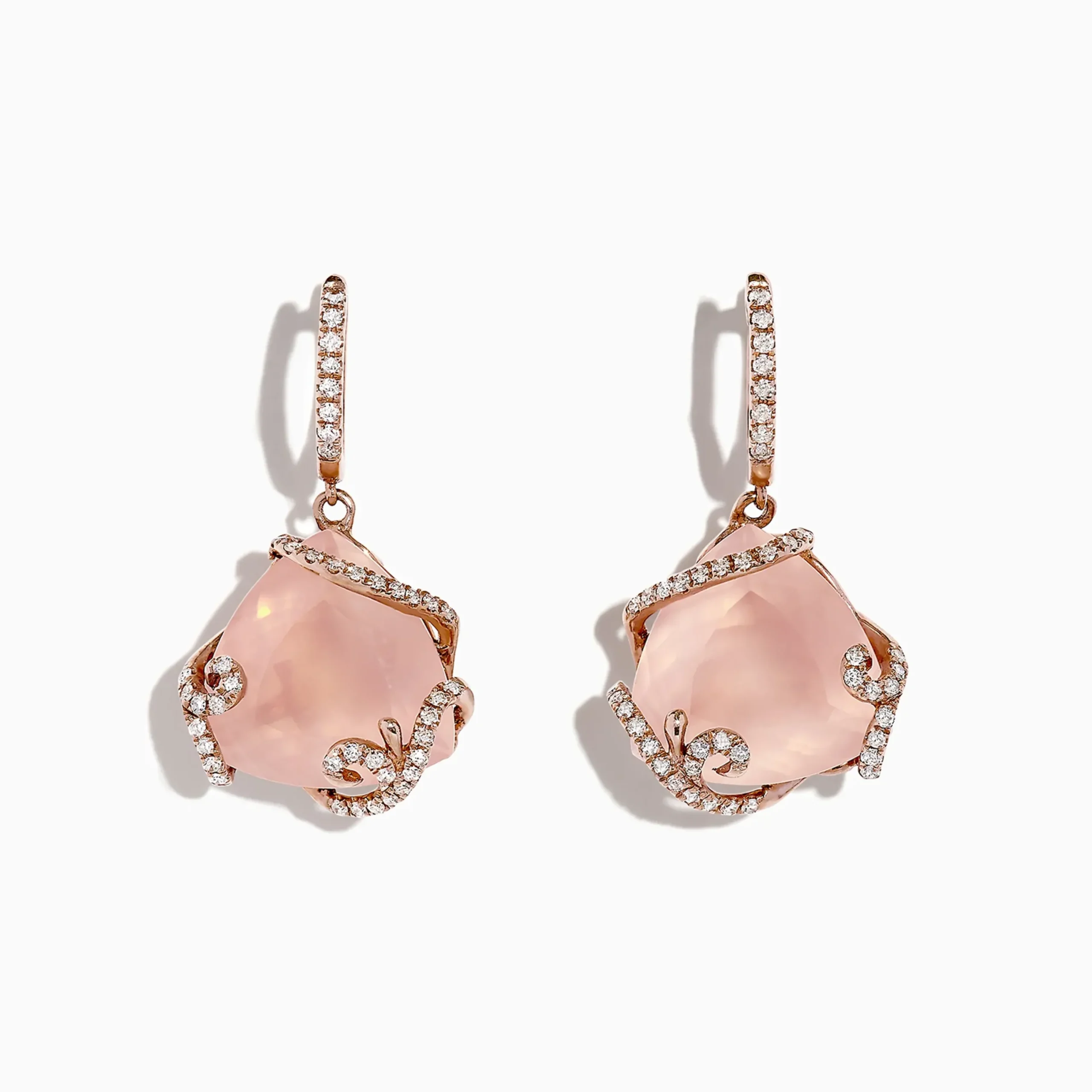 14K Rose Gold Rose Quartz and Diamond Earrings, 13.05 TCW