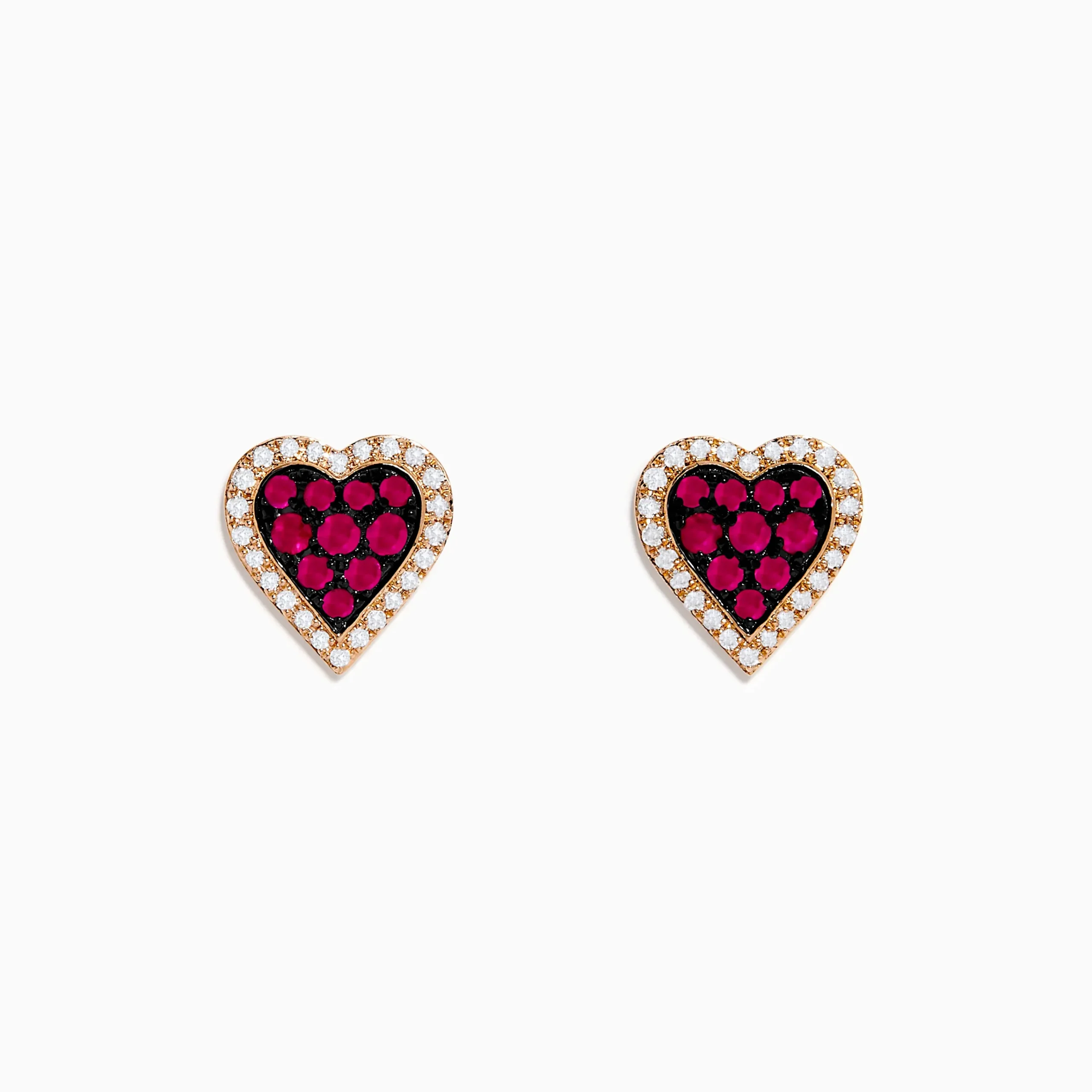 14K Rose Gold Ruby and Diamond Heart Earrings