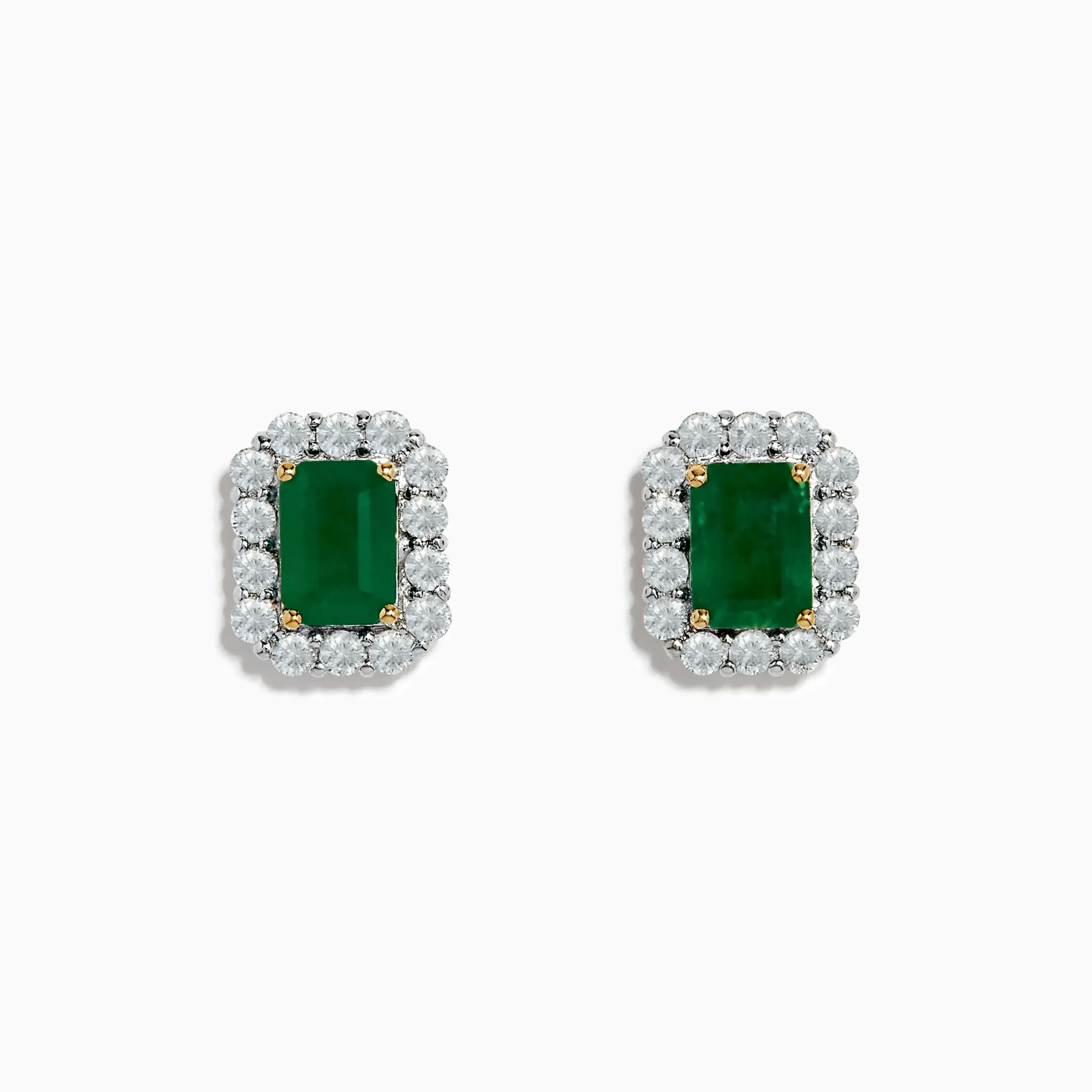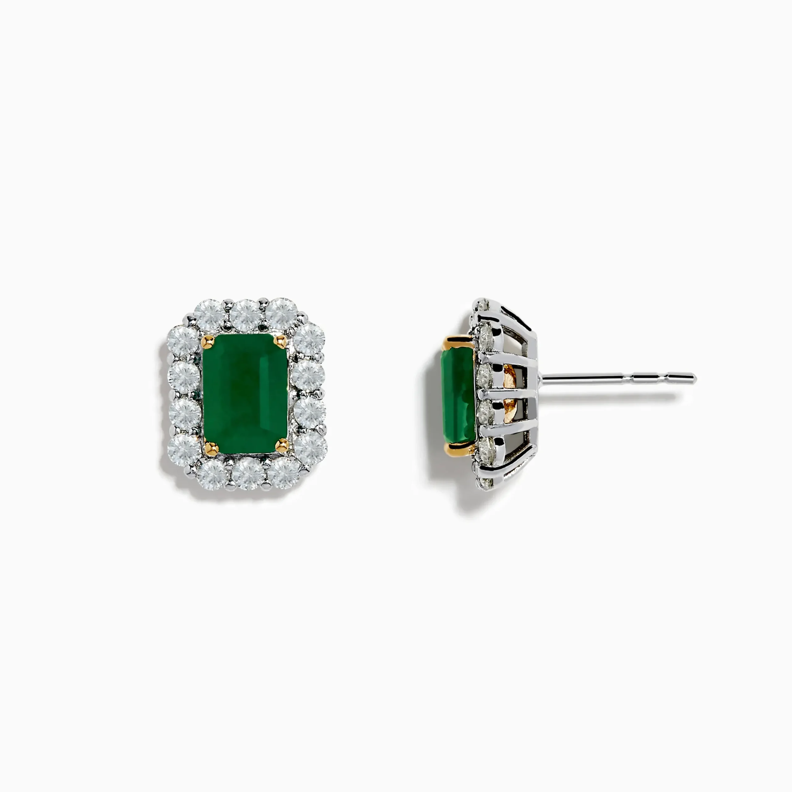 14K Two Tone Gold Emerald and Diamond Earrings