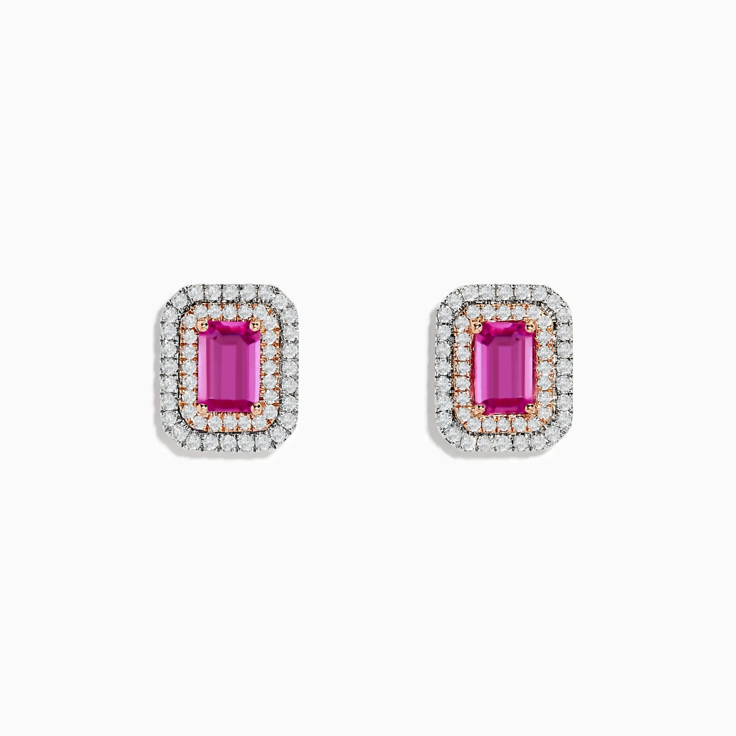 Effy 14K Two Tone Gold Pink Sapphire and Diamond Earrings