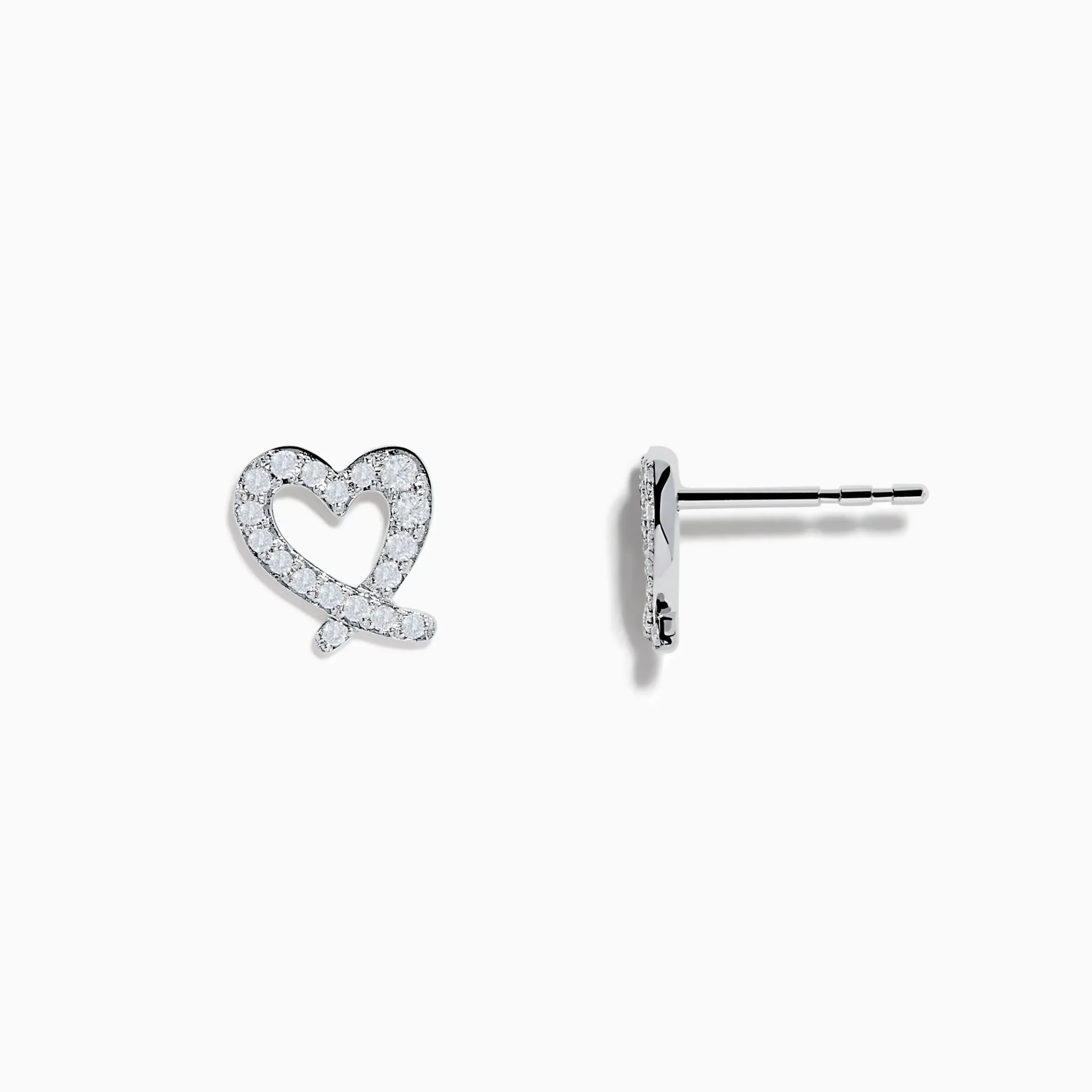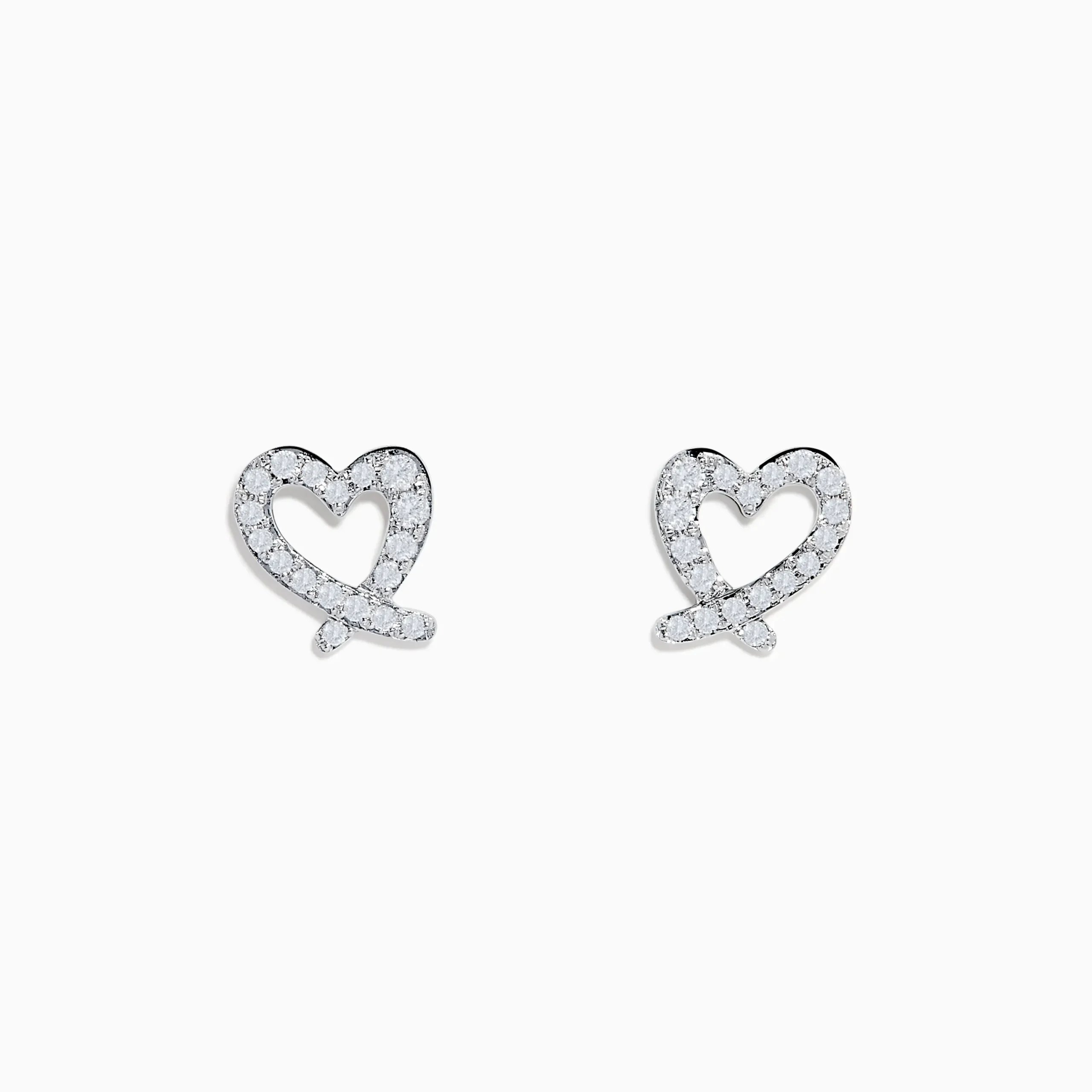 Metal:14K Gold Metal Color:WhiteStone: Round Diamond 0.2414K White Gold Diamond Heart Earrings