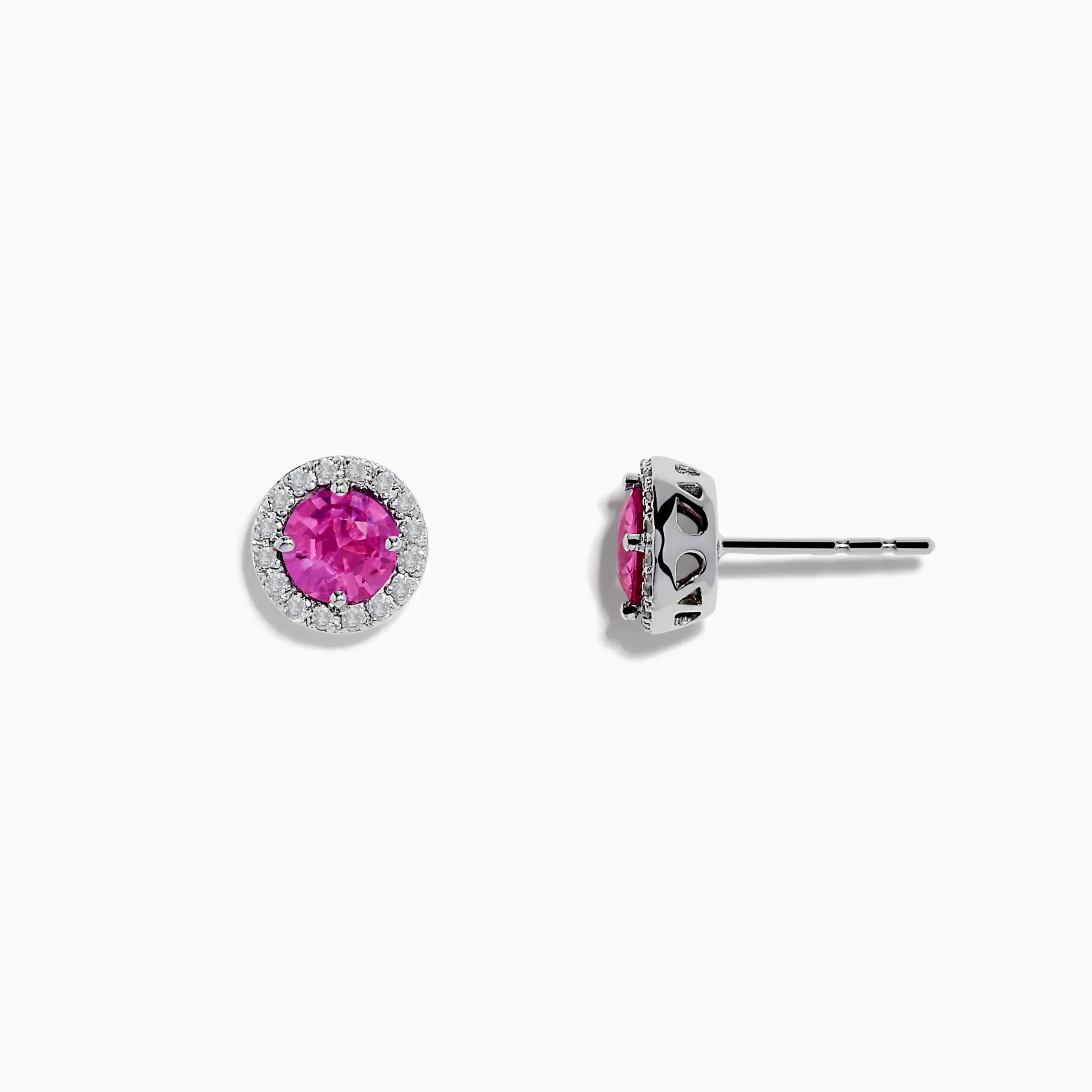 14K White Gold Pink Sapphire and Diamond Stud Earrings
