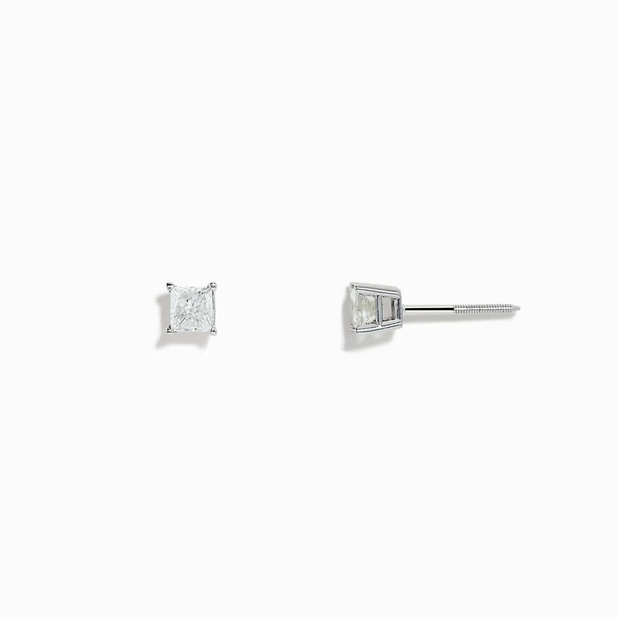 Metal:14K Gold Metal Color:WhiteStone: Round Diamond 0.49Effy 14K White Gold Princess Cut Diamond Solitaire Stud Earring…