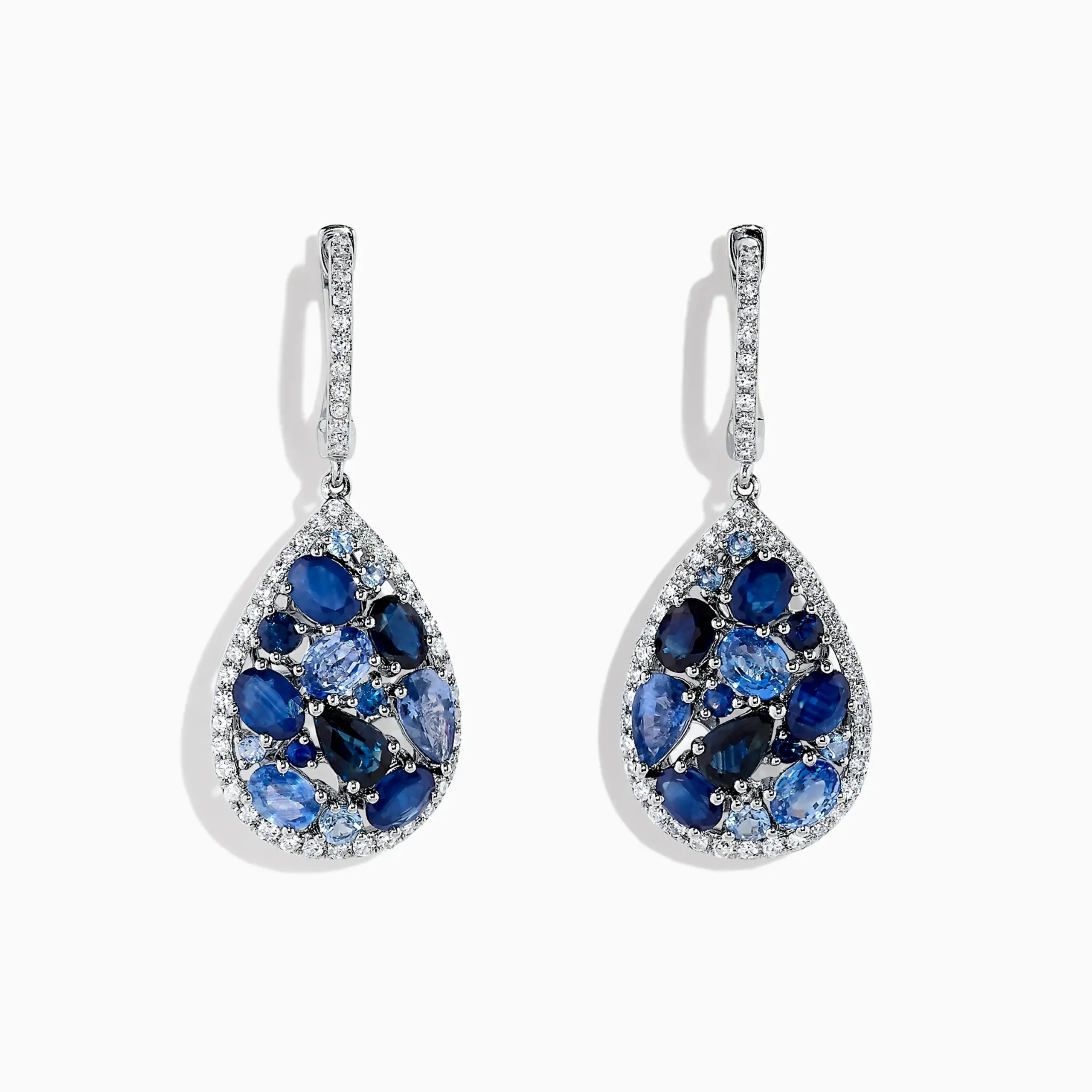 Effy Gemma 14K White Gold Sapphire and Diamond Teardrop Earrings, 4.31 TCW
