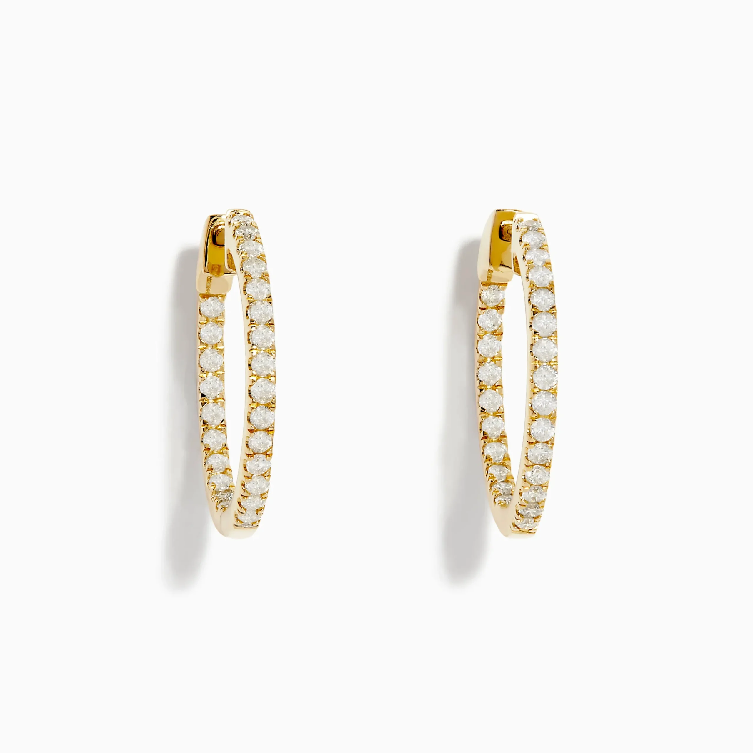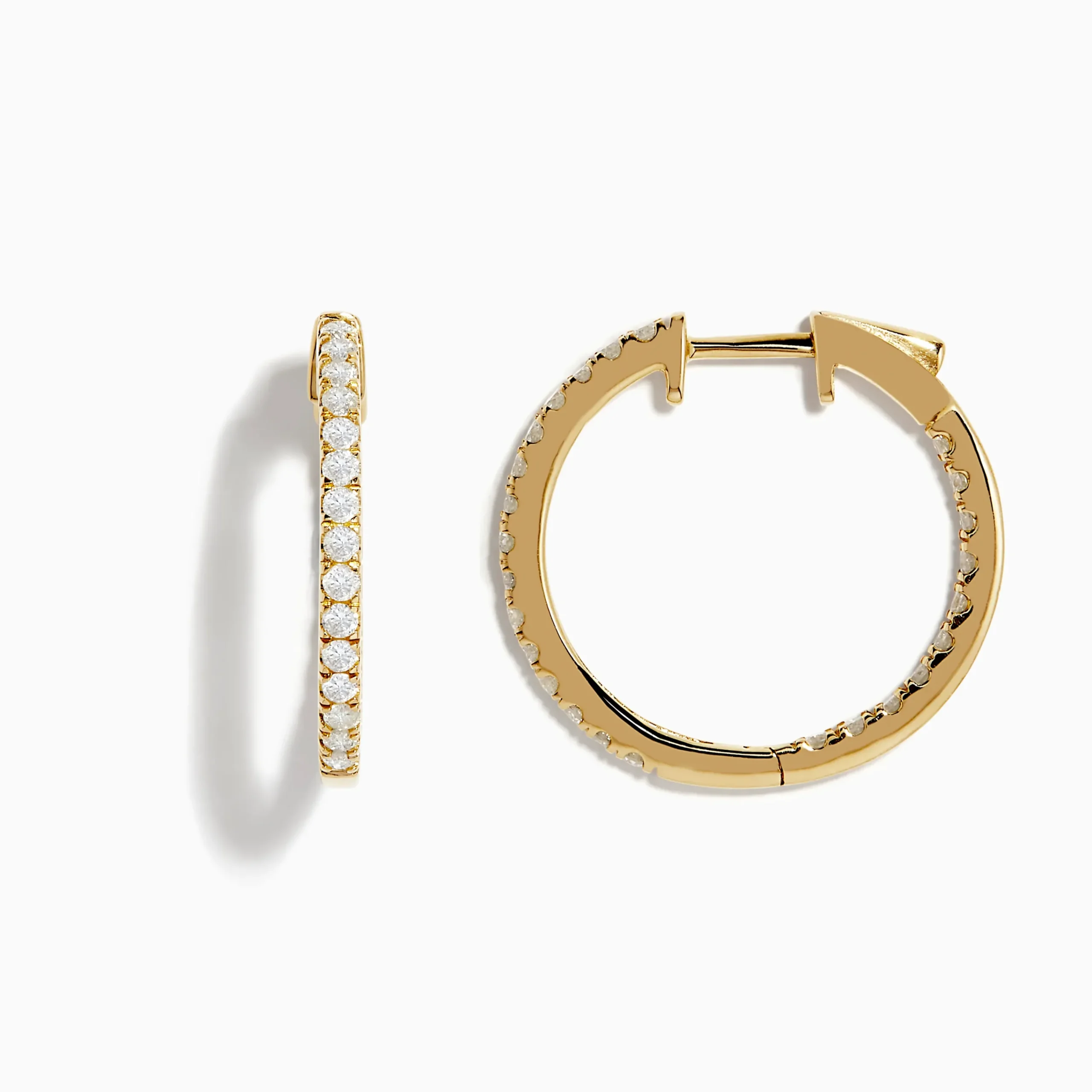 Effy 14K Yellow Gold 3/4″ Diamond Hoop Earrings 0.74 TCW
