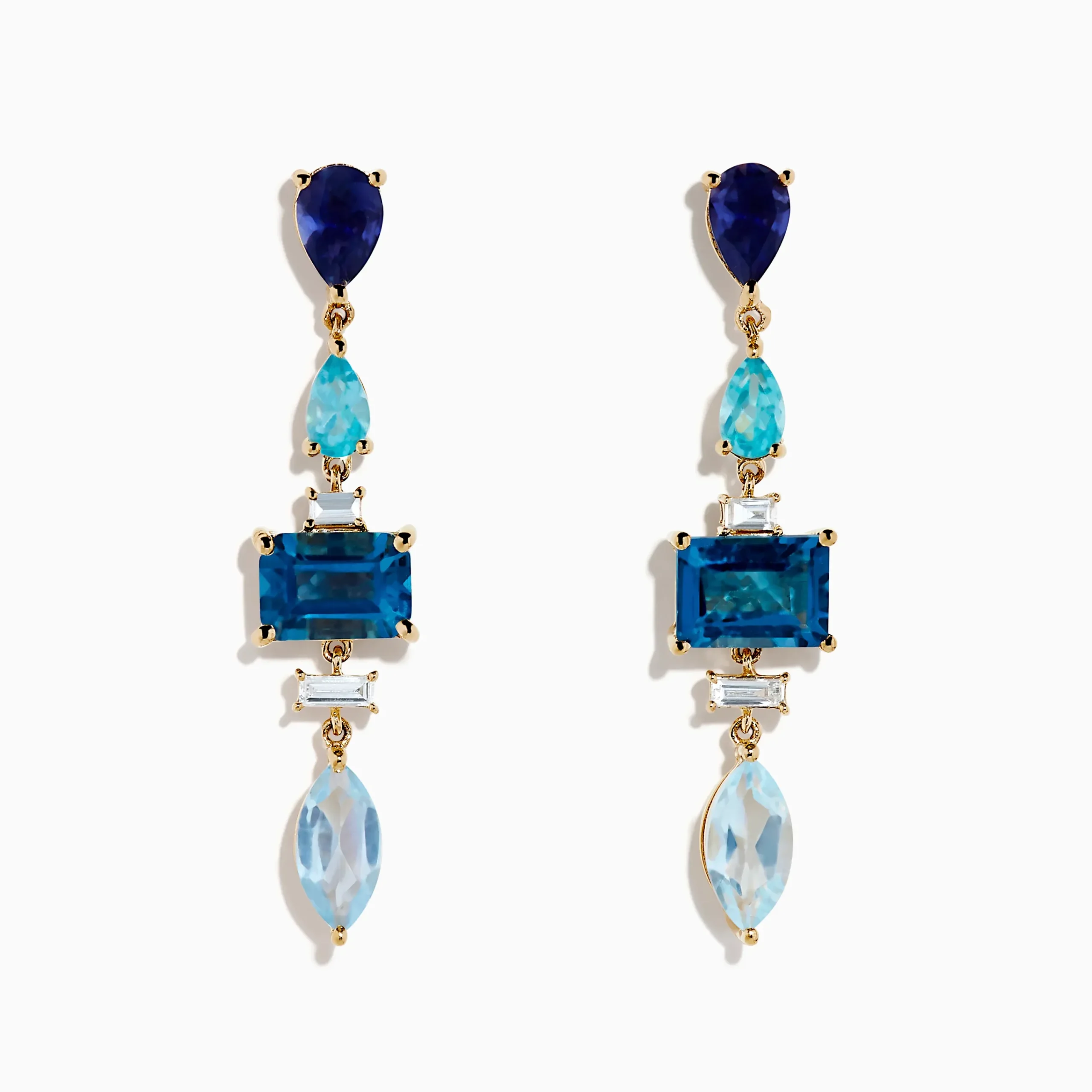 14K Yellow Gold Diamond Blue Topaz, Iolite and Apatite Earrings
