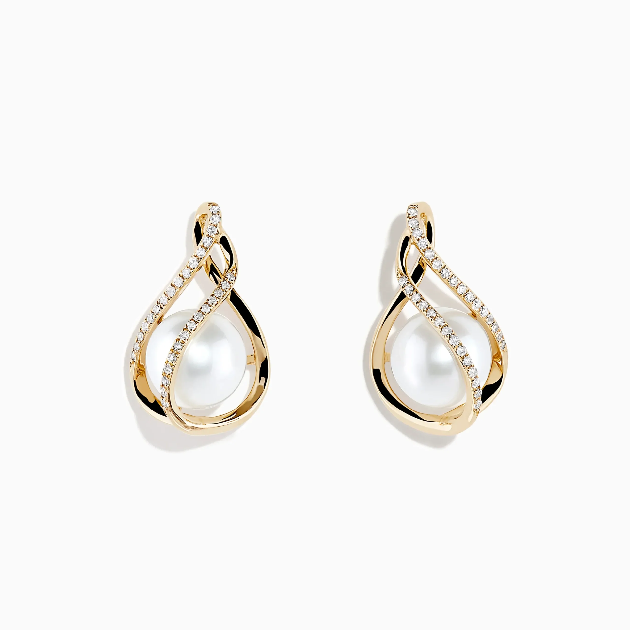 14K Yellow Gold Diamond Fresh Water Pearl Drop Earrings