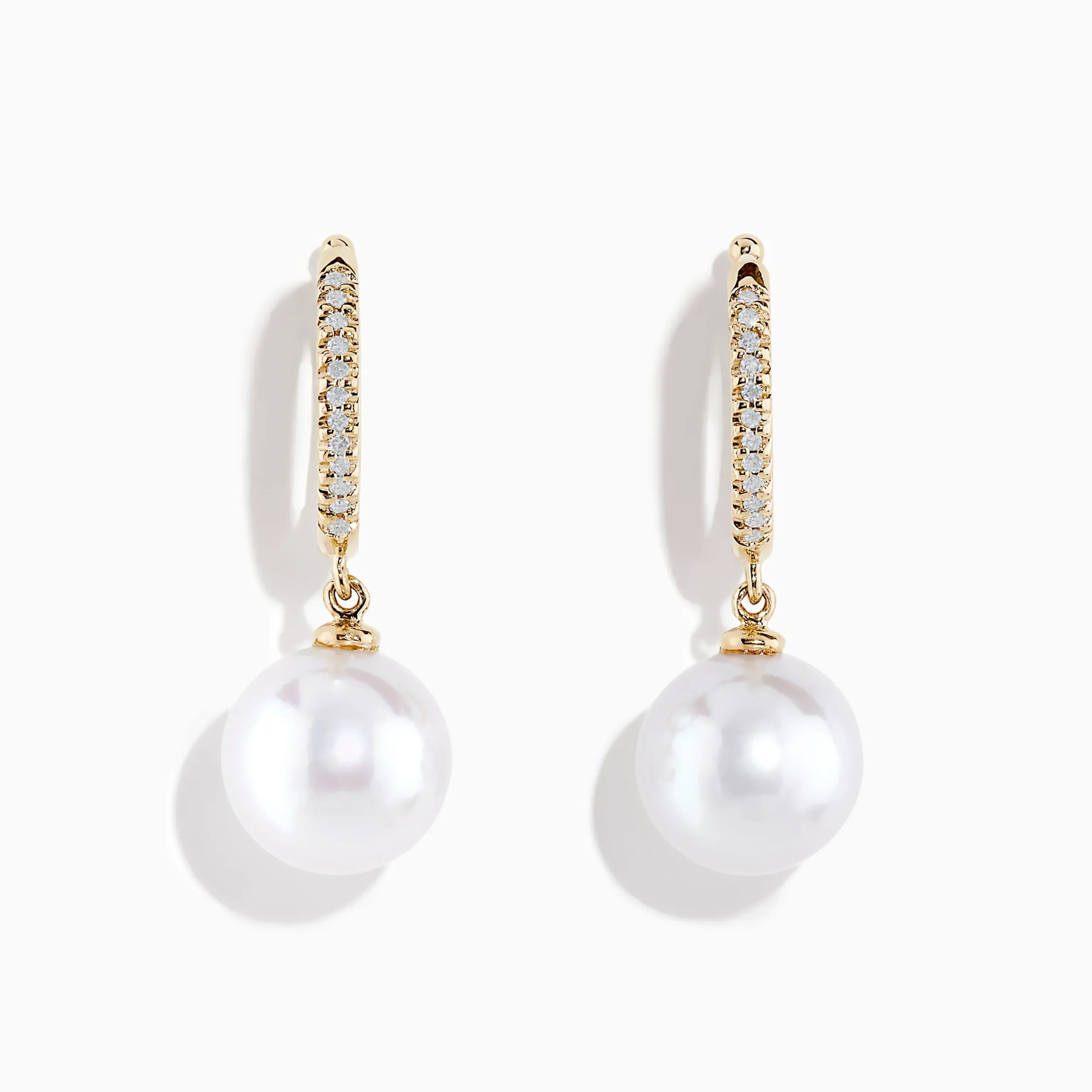 14K Yellow Gold Diamond, Fresh Water Pearl Earrings