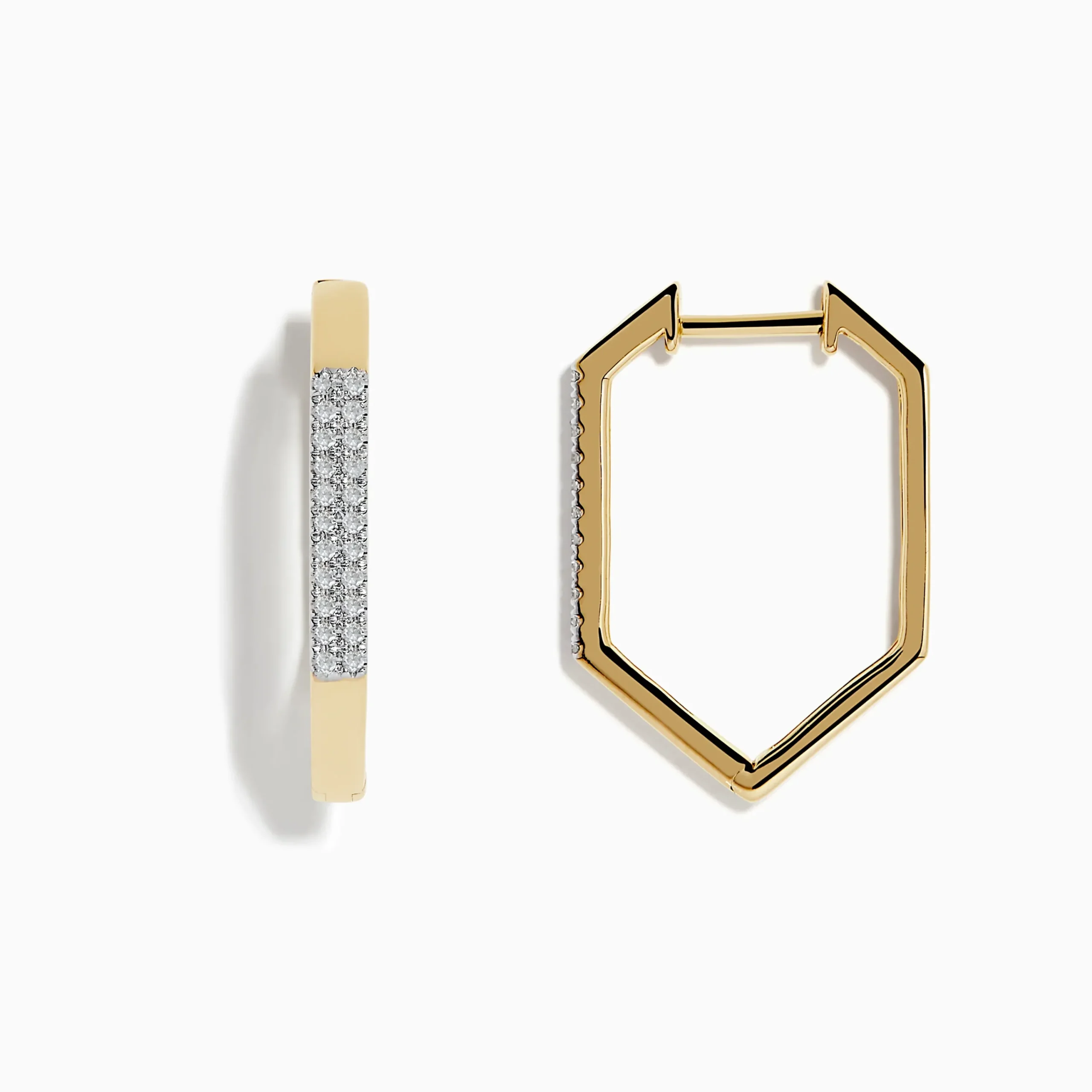 Effy 14K Yellow Gold Diamond Geometric Hoop Earrings 0.22 TCW