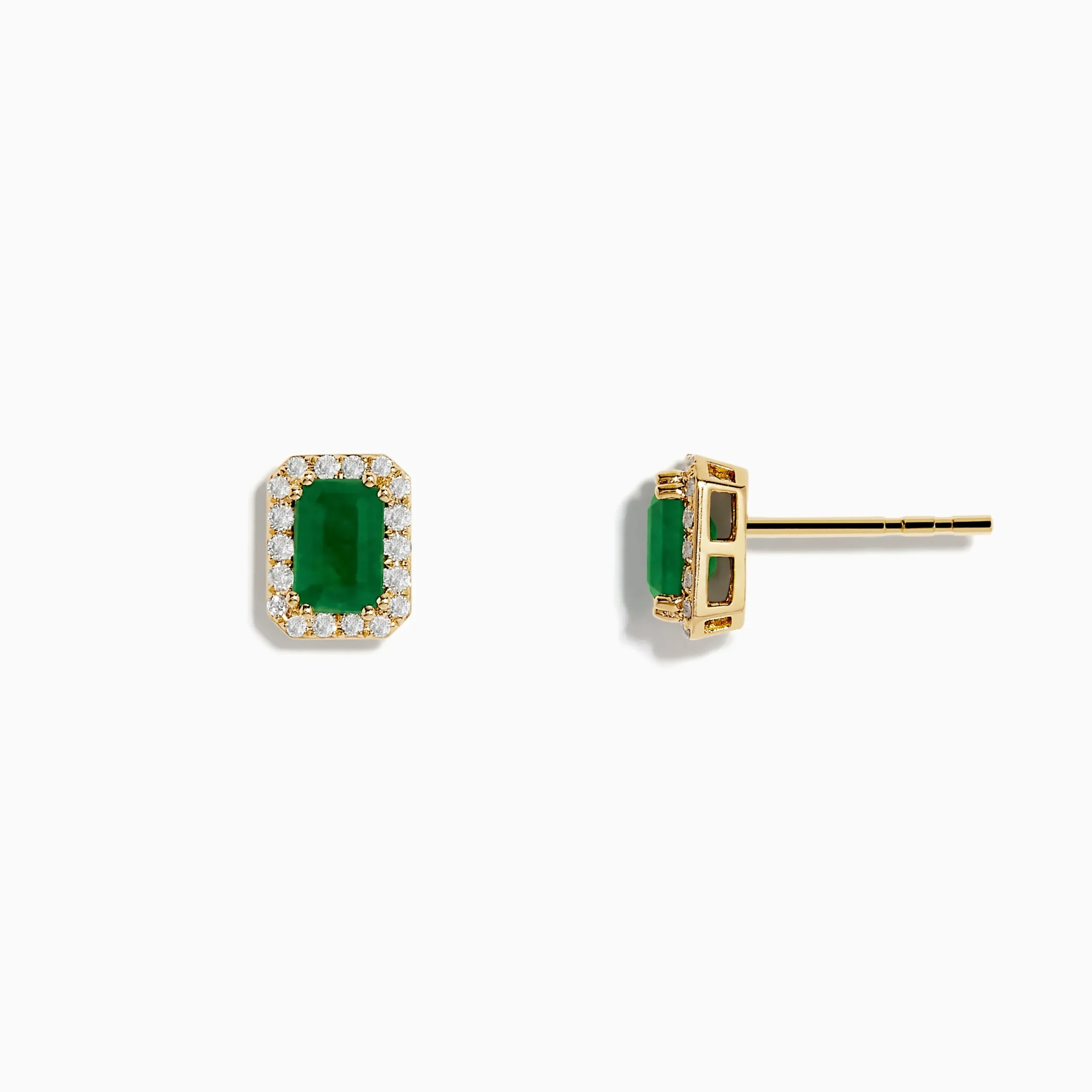 Effy 14K Yellow Gold Diamond Halo Emerald Stud Earrings