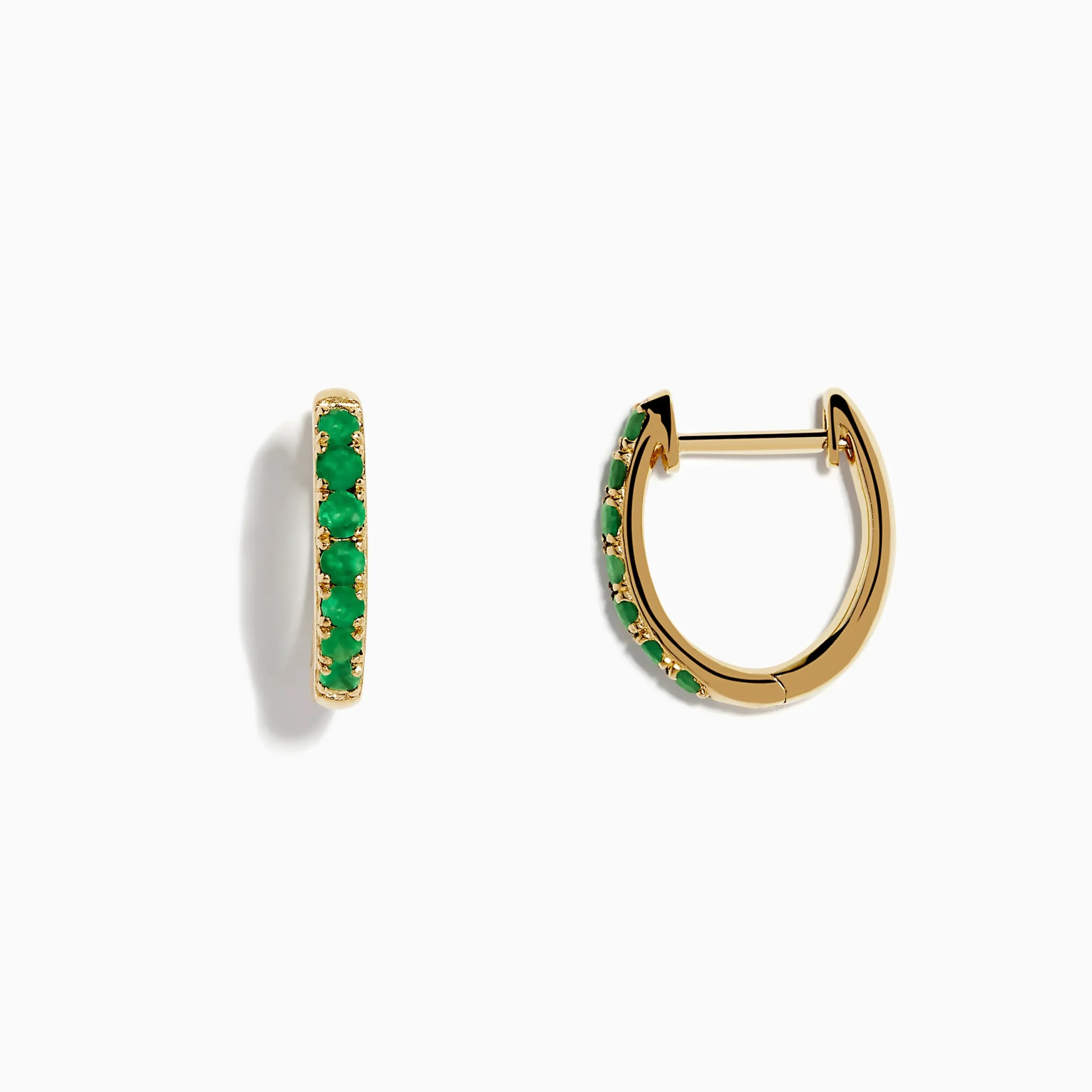 Metal:14K Gold Metal Color:YellowStone: Round Emerald 0.53Effy 14K Yellow Gold Emerald Huggie Earrings