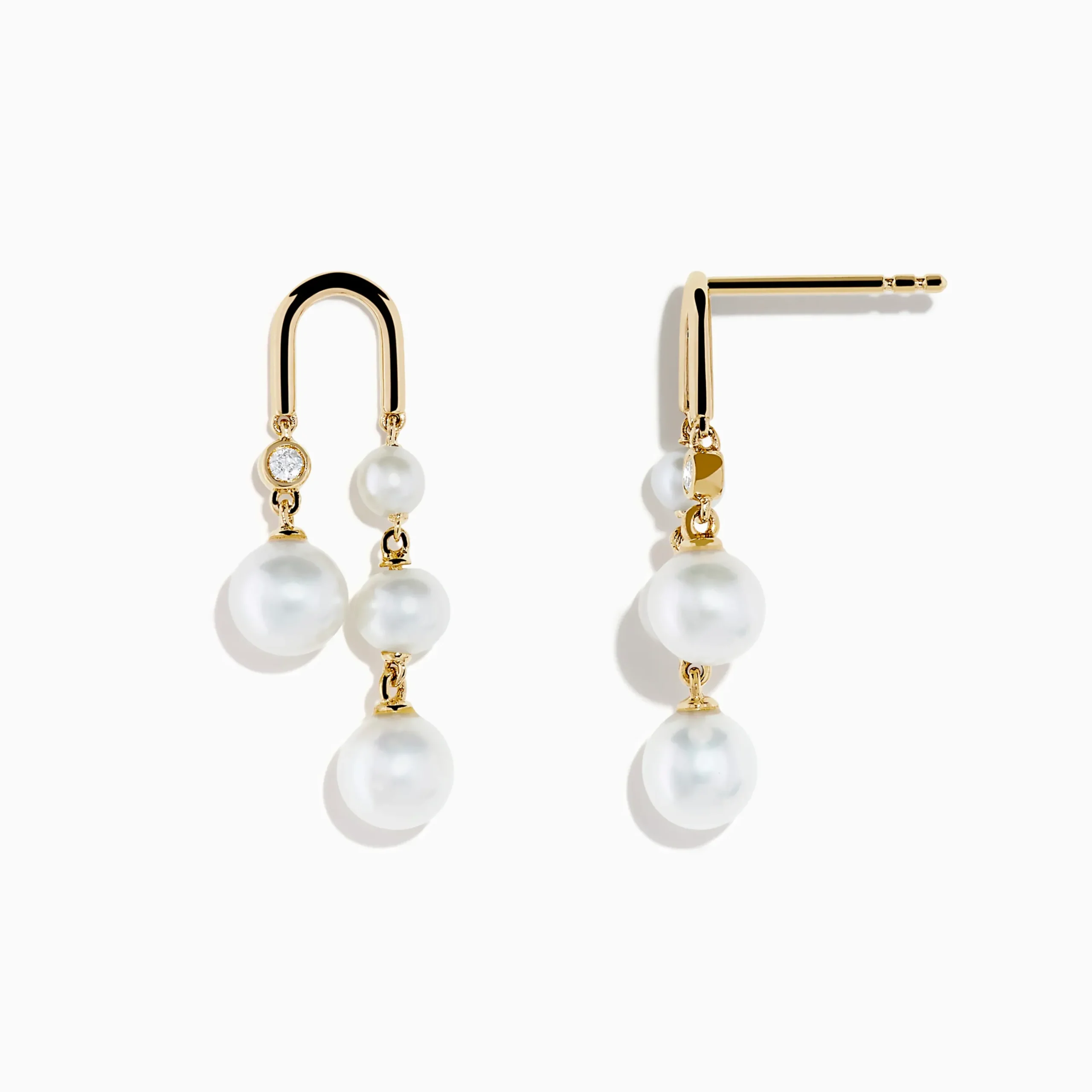 14K Yellow Gold Fresh Water Pearl and Diamond Drop Earrings