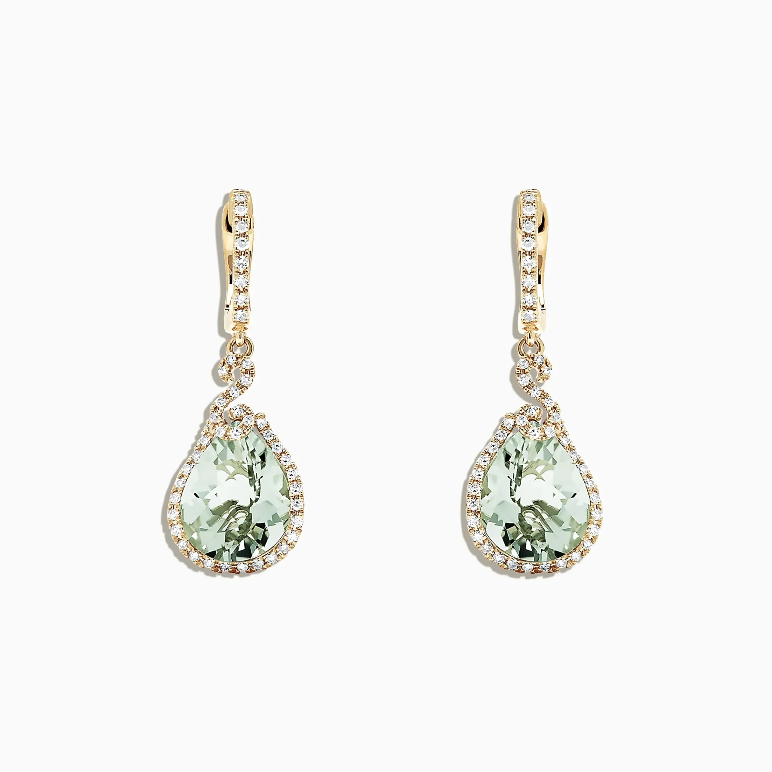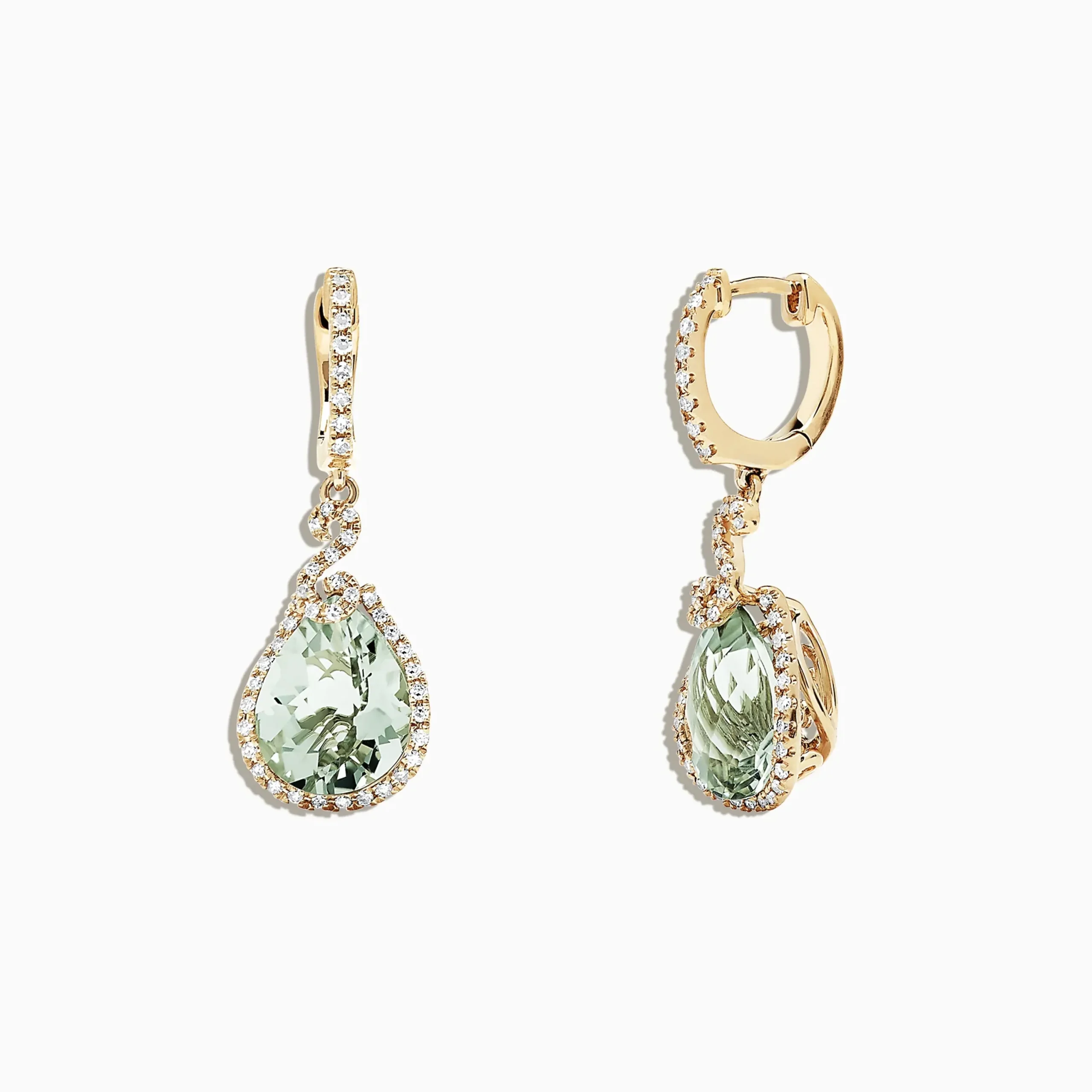 Effy 14K Yellow Gold Green Amethyst and Diamond Drop Earrings, 7.03 TCW