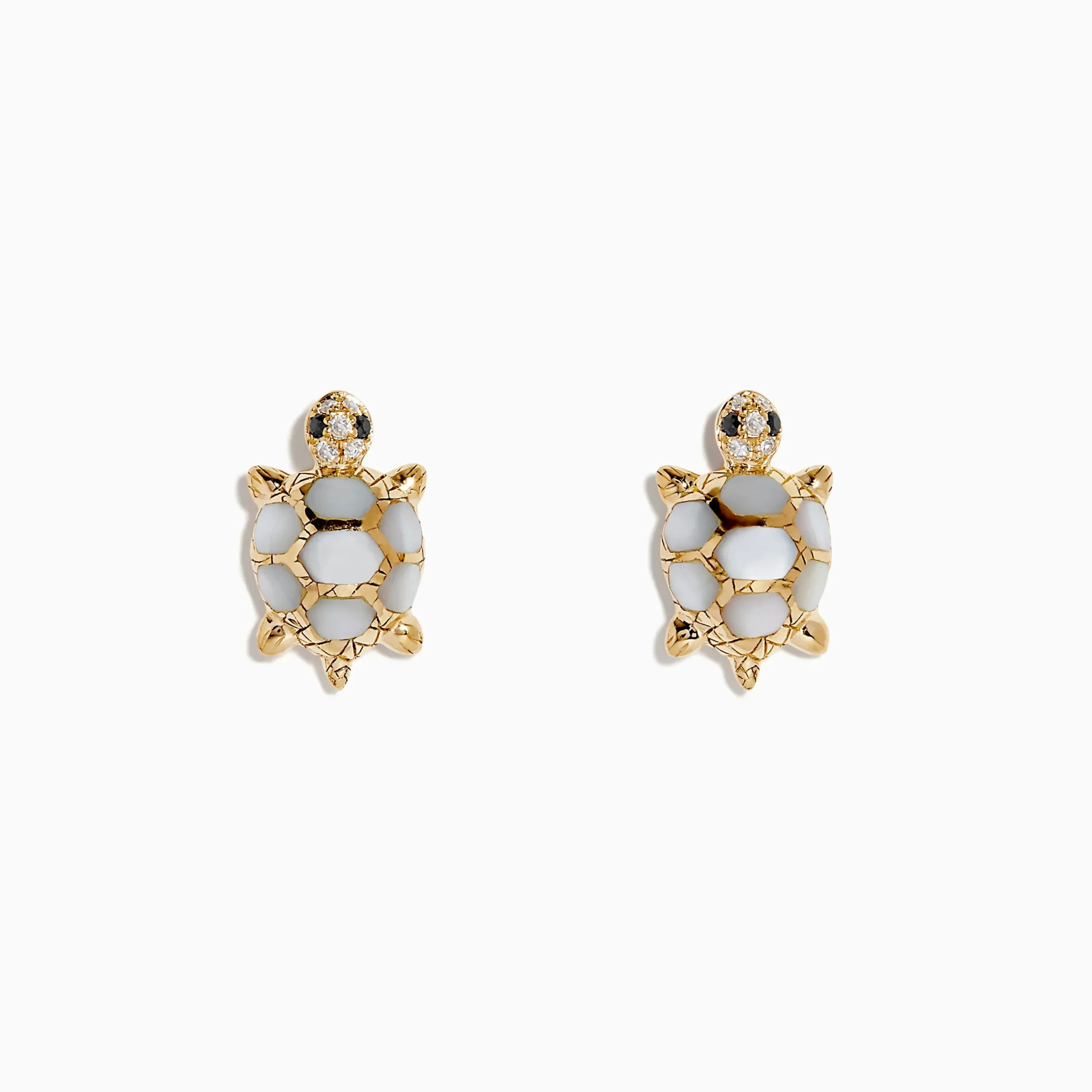 Effy 14K Yellow Gold Multi Diamond and Mother of Pearl Turtle Stud Earrings