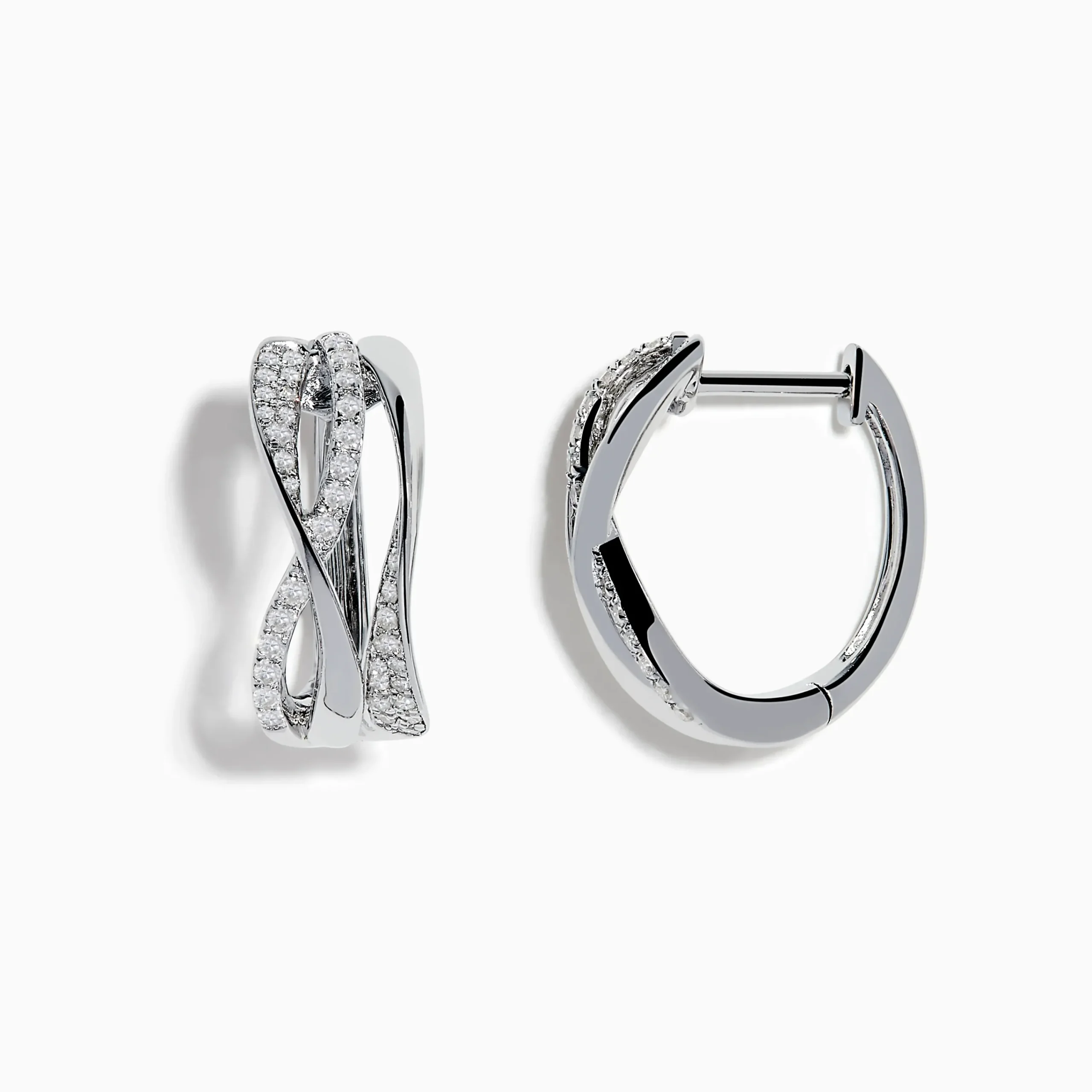 Metal:Sterling Silver Metal Color:WhiteStone: Round Diamond 0.37925 Silver Diamond Crossover Hoop Earrings