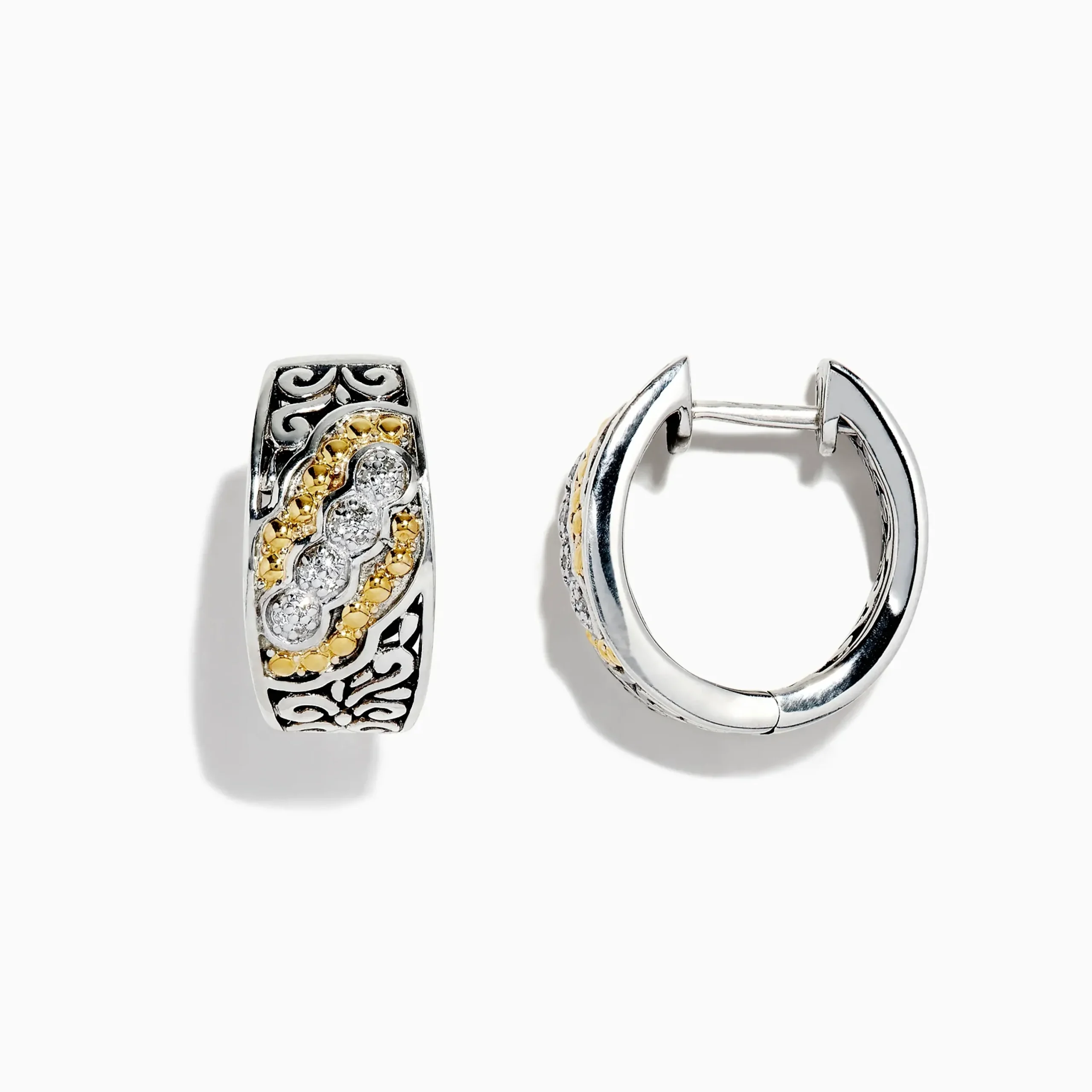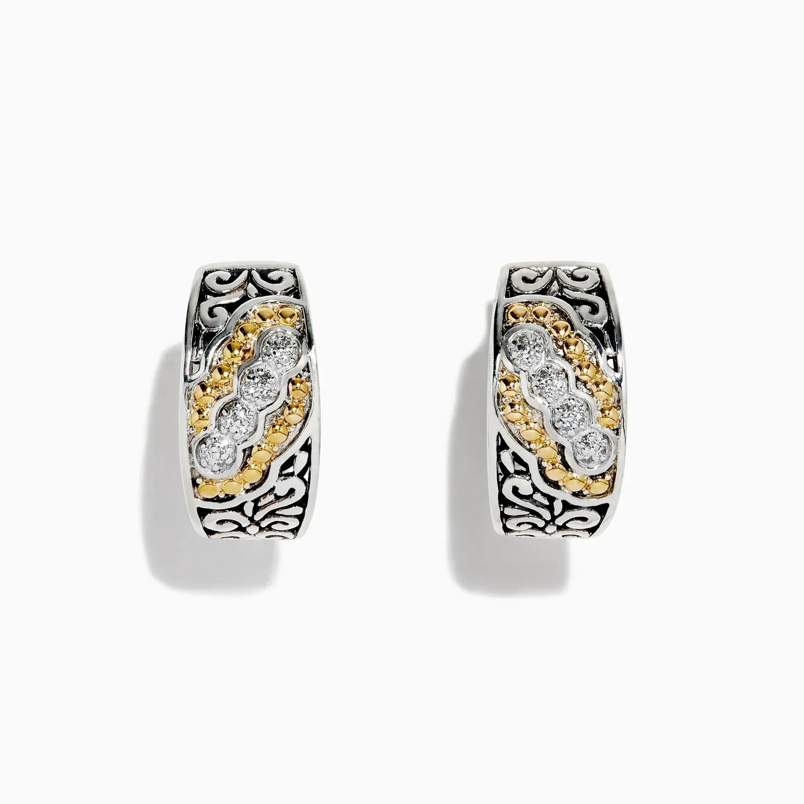 Effy 925 Sterling Silver and 18K Yellow Gold Diamond Earrings, 0.12 TCW