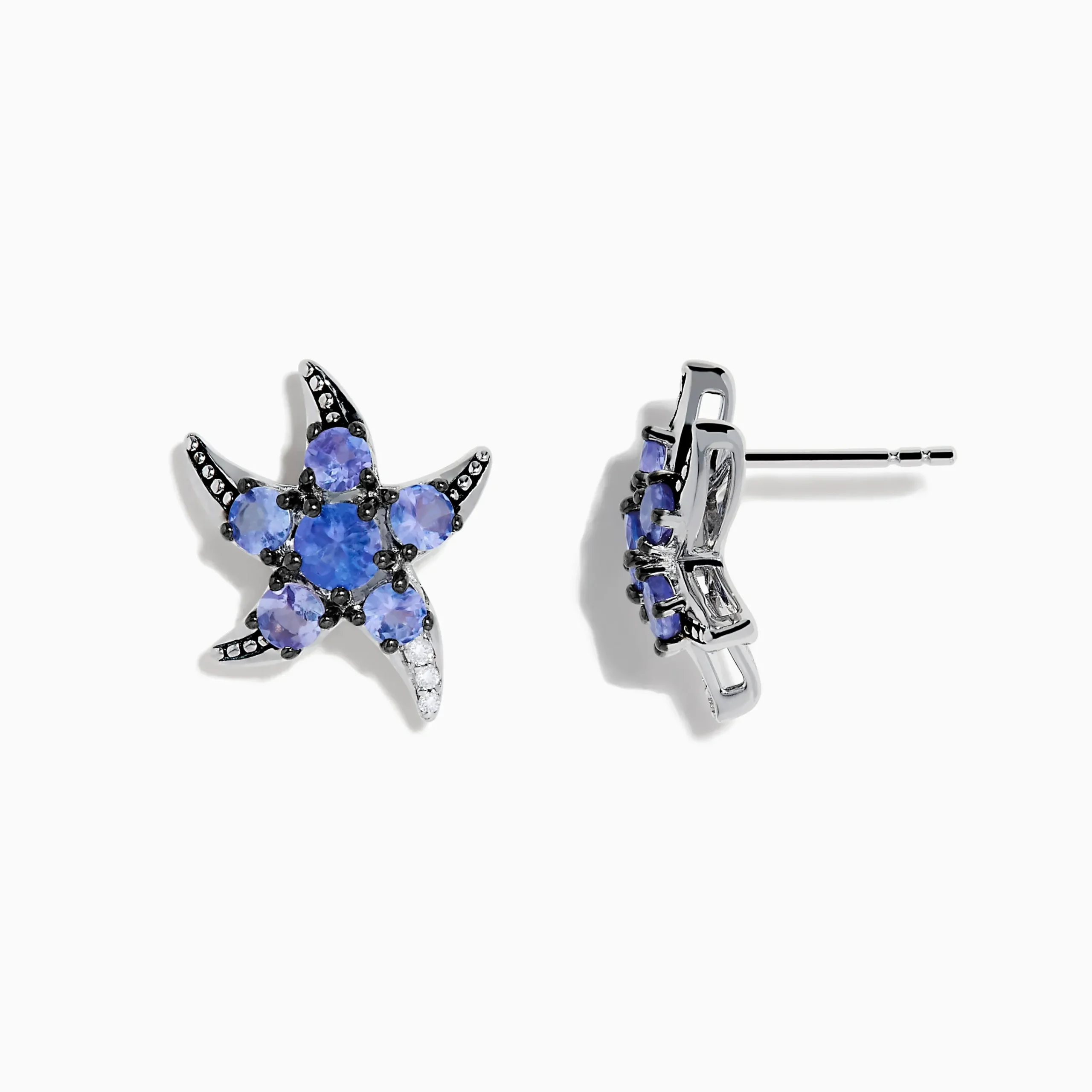 925 Sterling Silver Tanzanite and Diamond Starfish Earrings