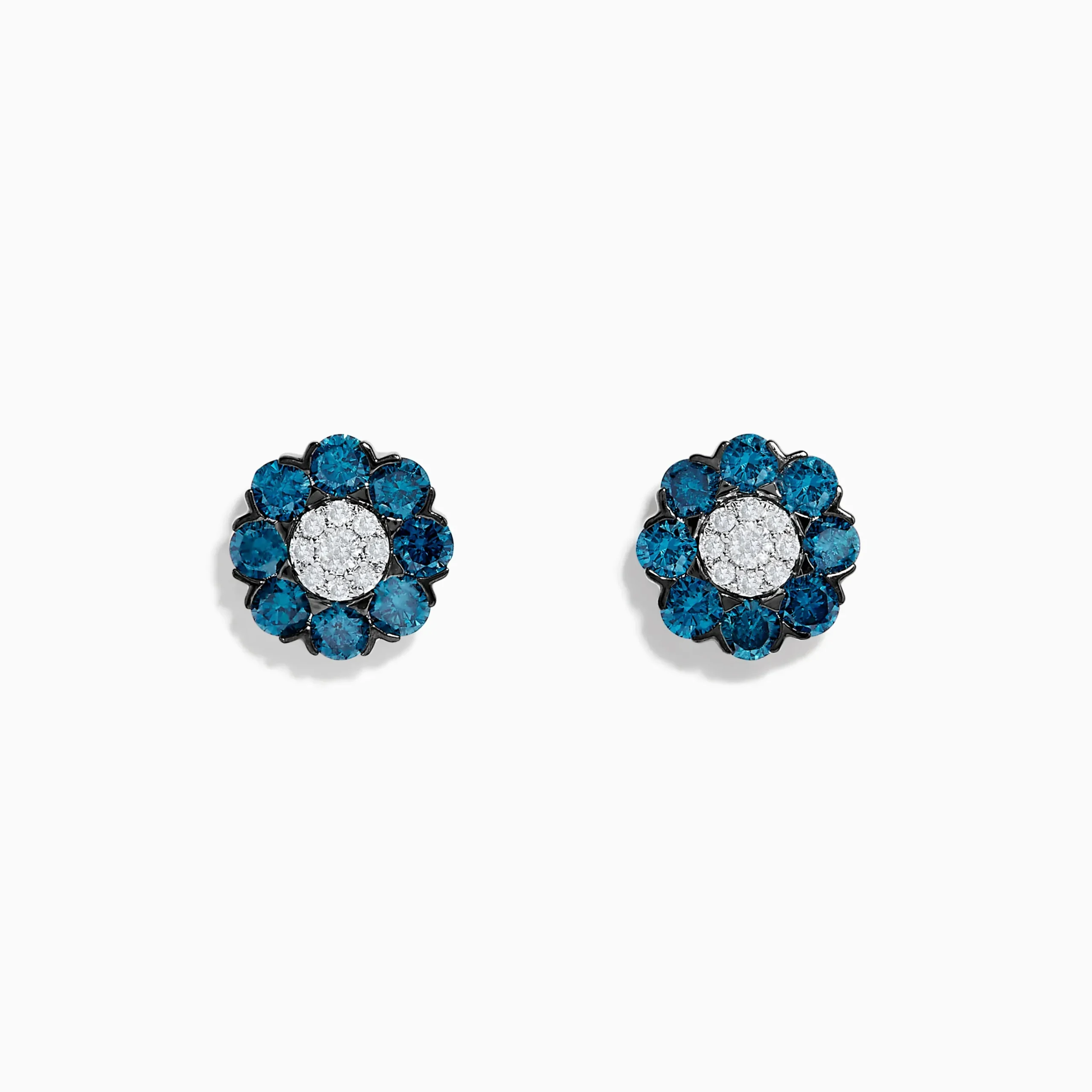 Effy Bella Bleu 14K White Gold Blue and White Diamond Flower Stud Earrings