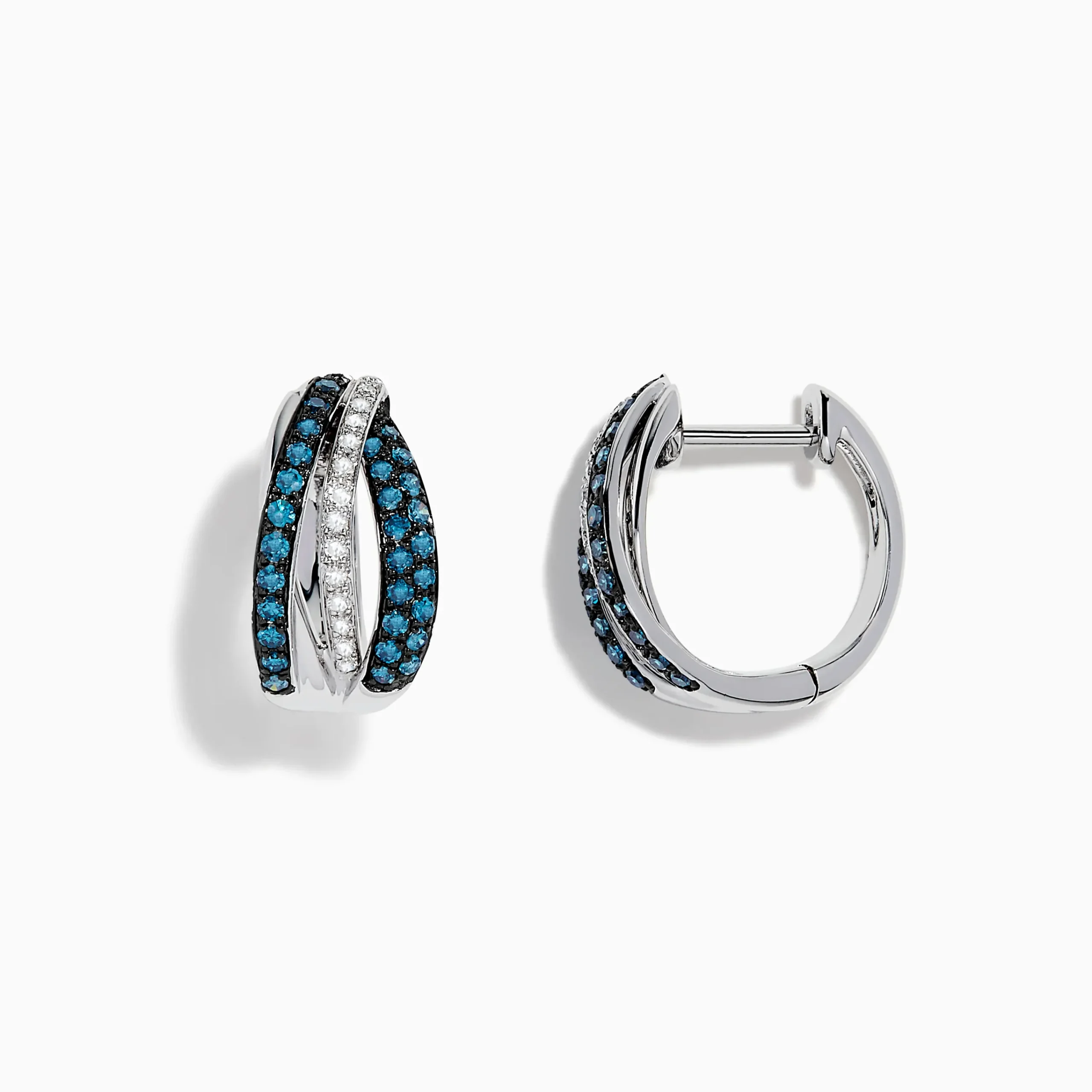 Effy Bella Bleu 14K White Gold White and Blue Diamond Hoop Earrings