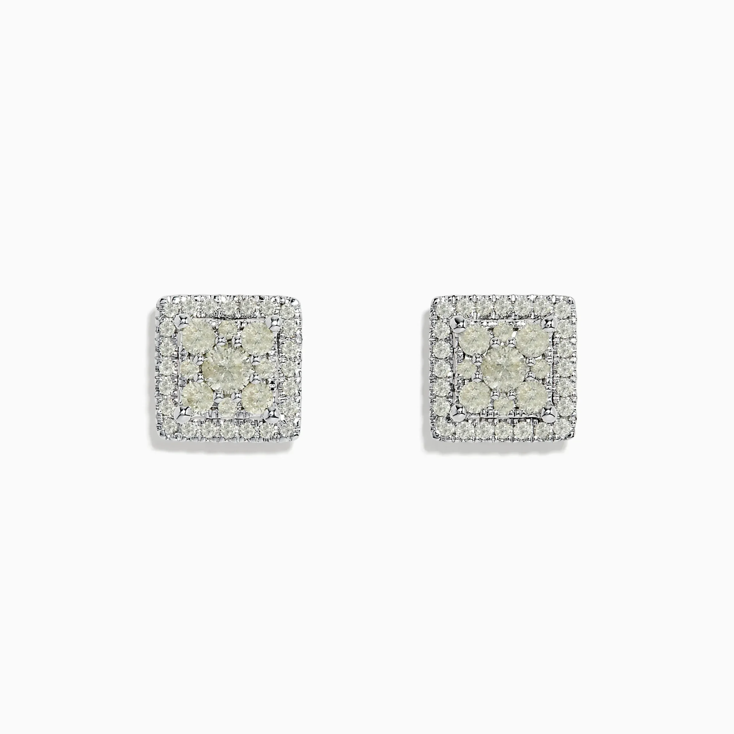 Effy Bouquet 14K White Gold Square Diamond Cluster Stud Earrings 0.97 TCW
