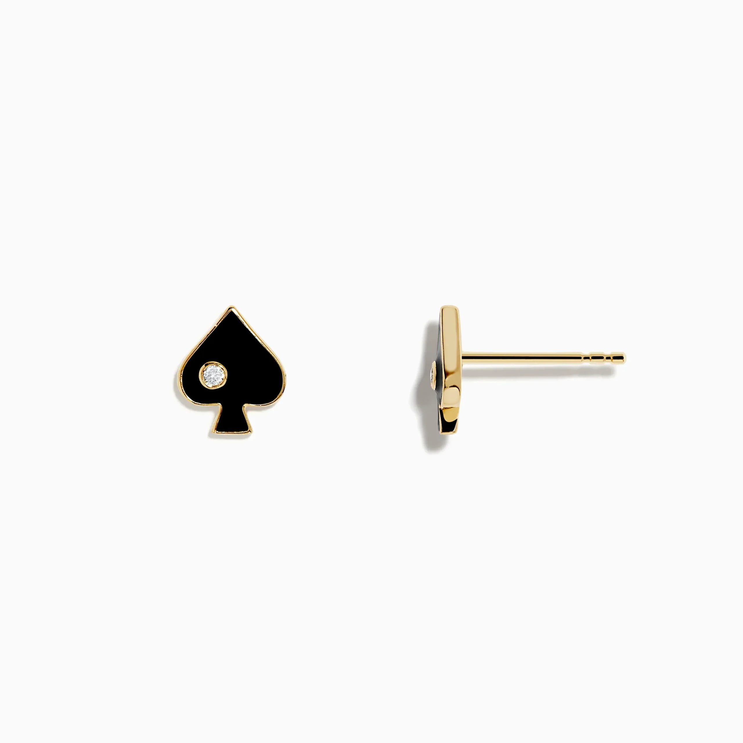 Casino 14K Yellow Gold Diamond Spade Suit Enamel Earrings