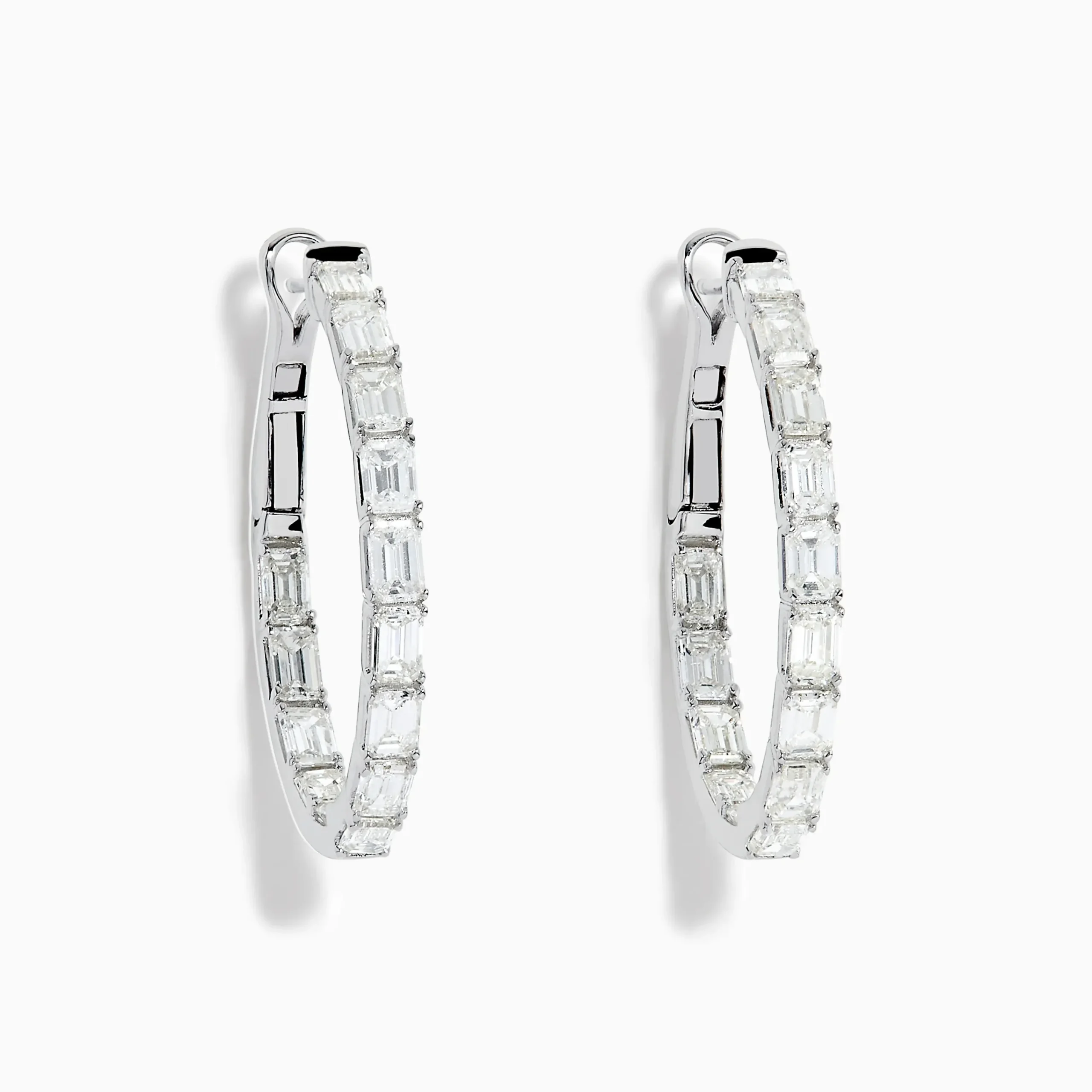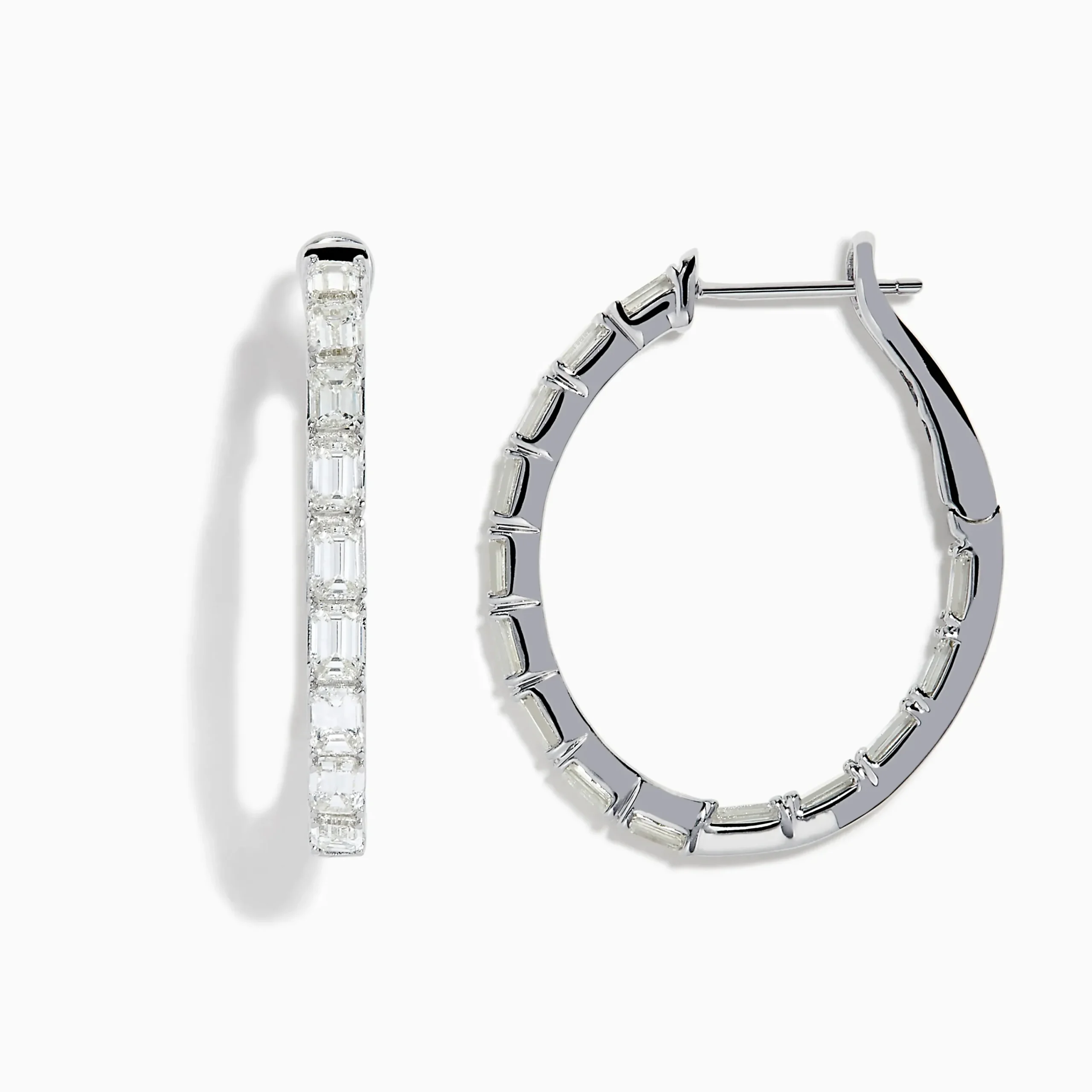 Metal:14K Gold Metal Color:WhiteStone: Emerald Cut Diamond 2.88Effy Classique 14K White Gold Diamond Hoop Earrings