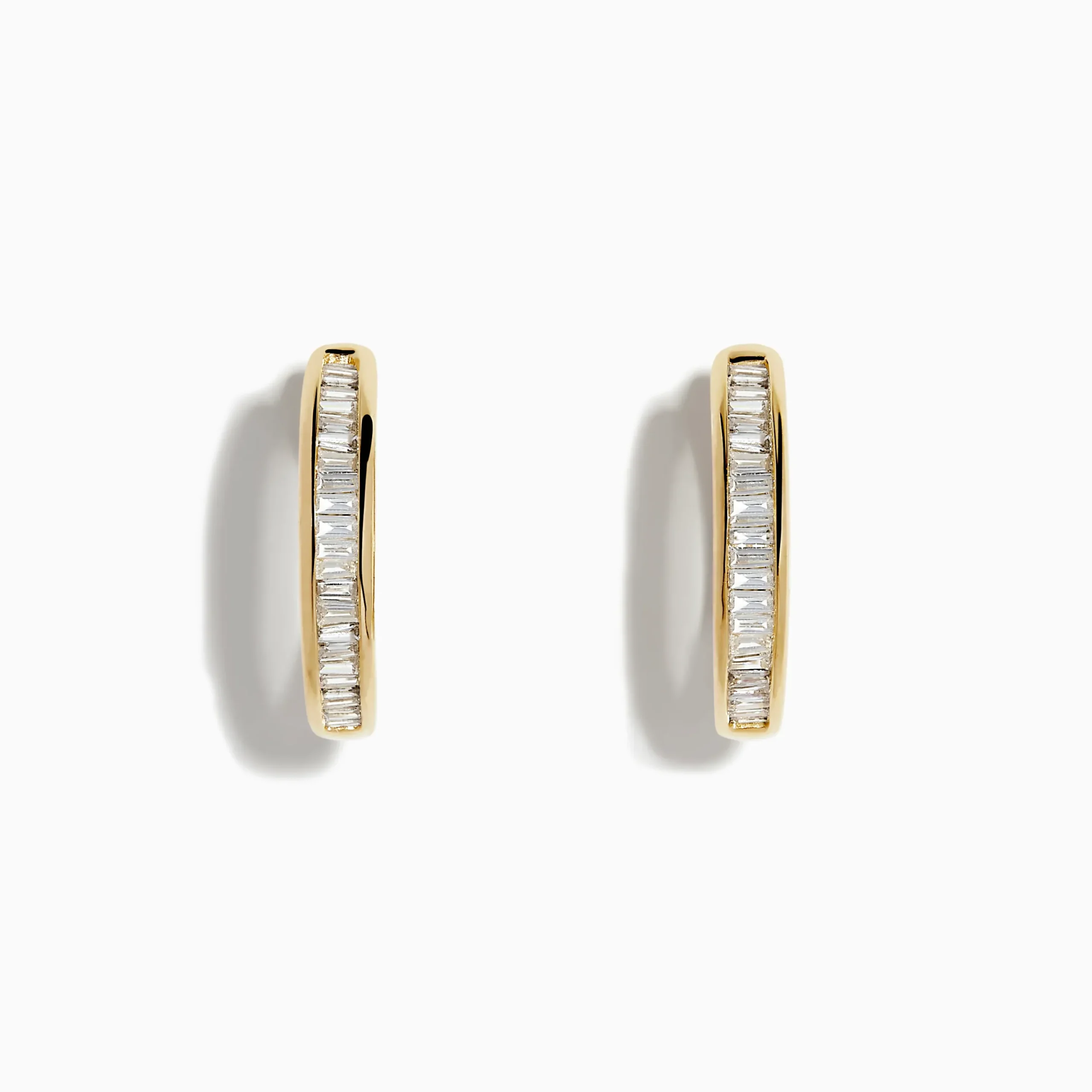 Metal:14K Gold Metal Color:YellowStone: Baguette Diamond 0.47D’oro 14K Yellow Gold 5/8″ Diamond Hoop Earrings 0.47 TCW