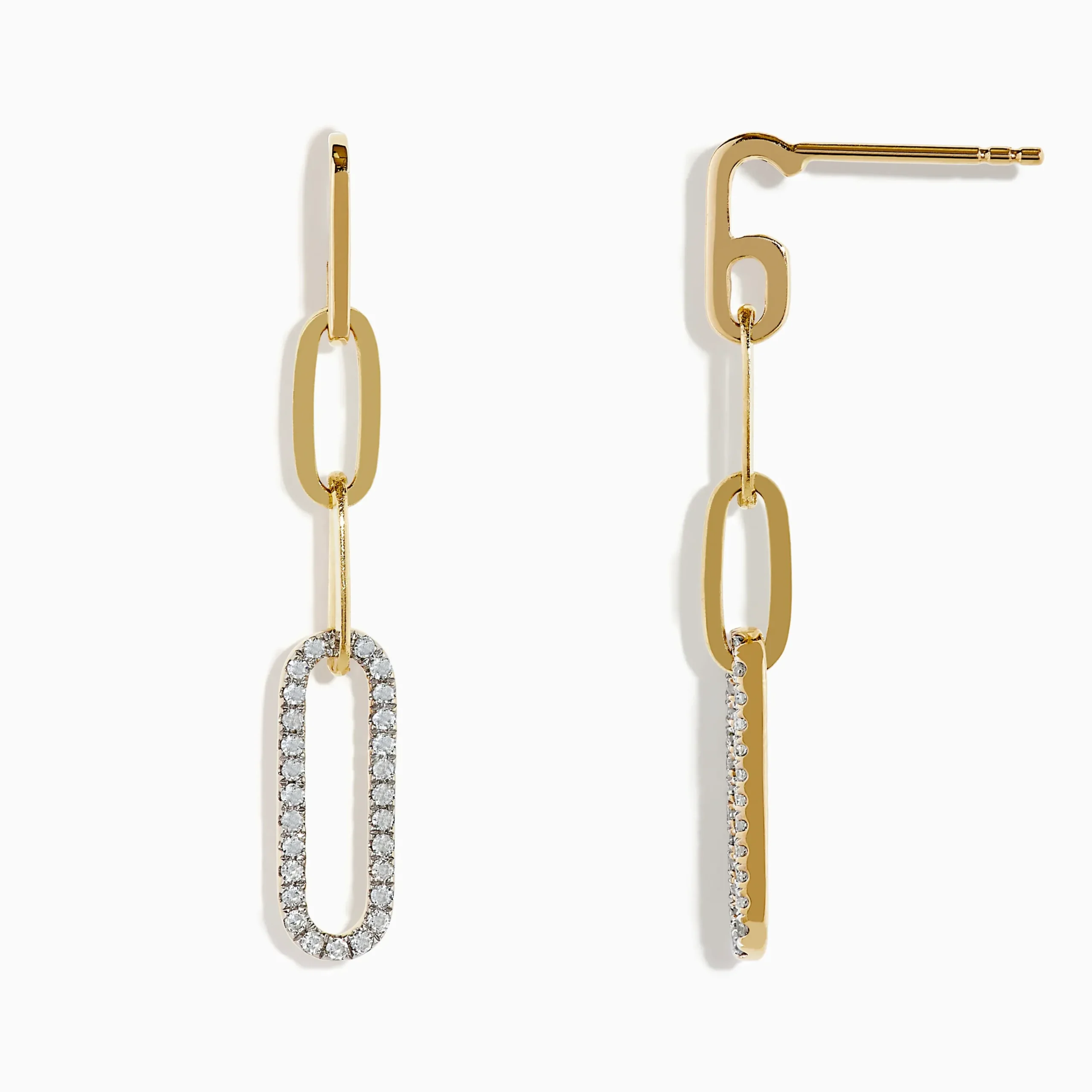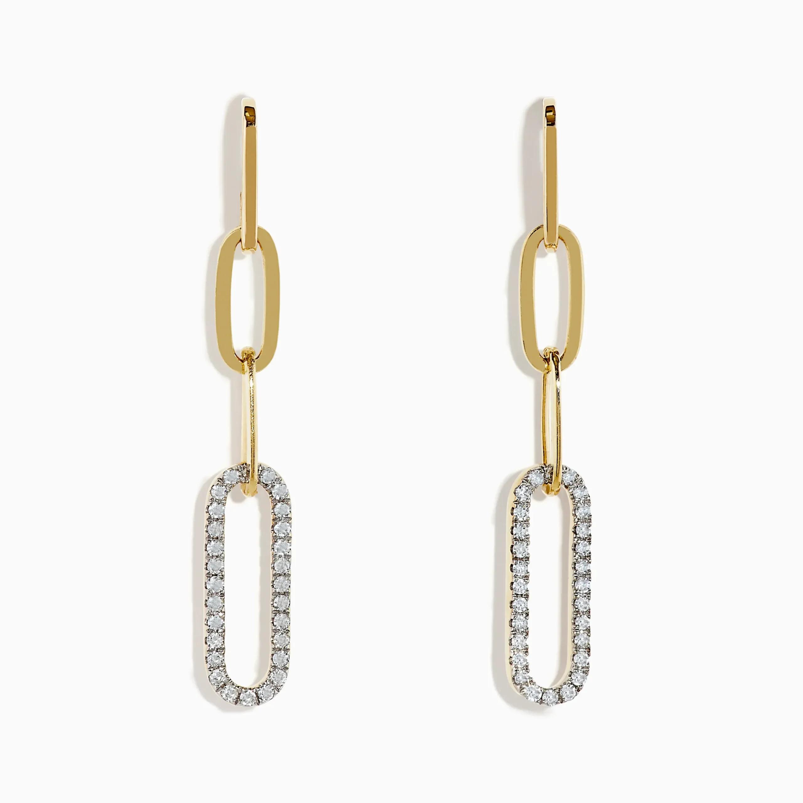 Metal:14K Gold Metal Color:YellowStone: Round Diamond 0.22Effy D’oro 14K Yellow Gold Diamond Paperclip Drop Earrings