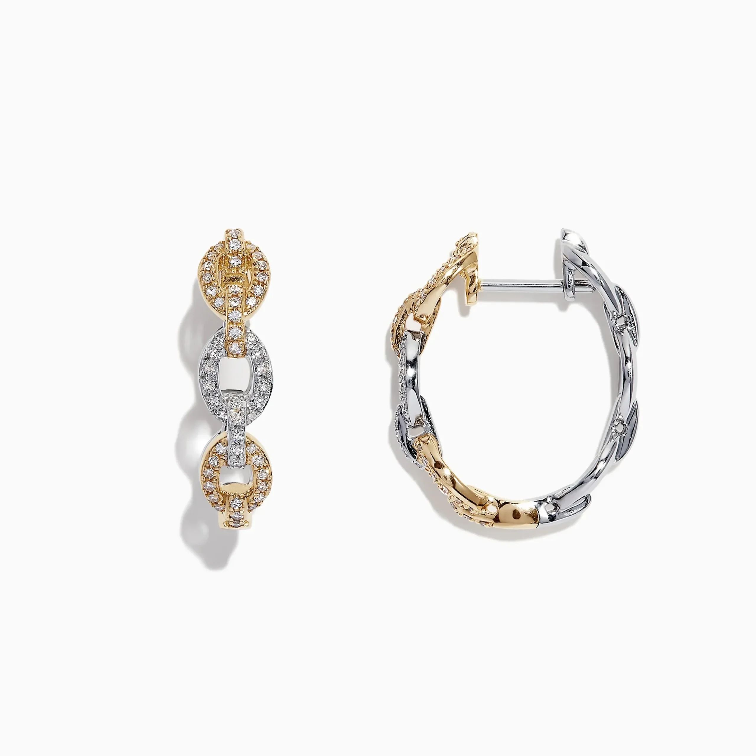 Effy Duo 14K Two Tone Gold Diamond Chain Link Hoop Earrings, 0.40 TCW