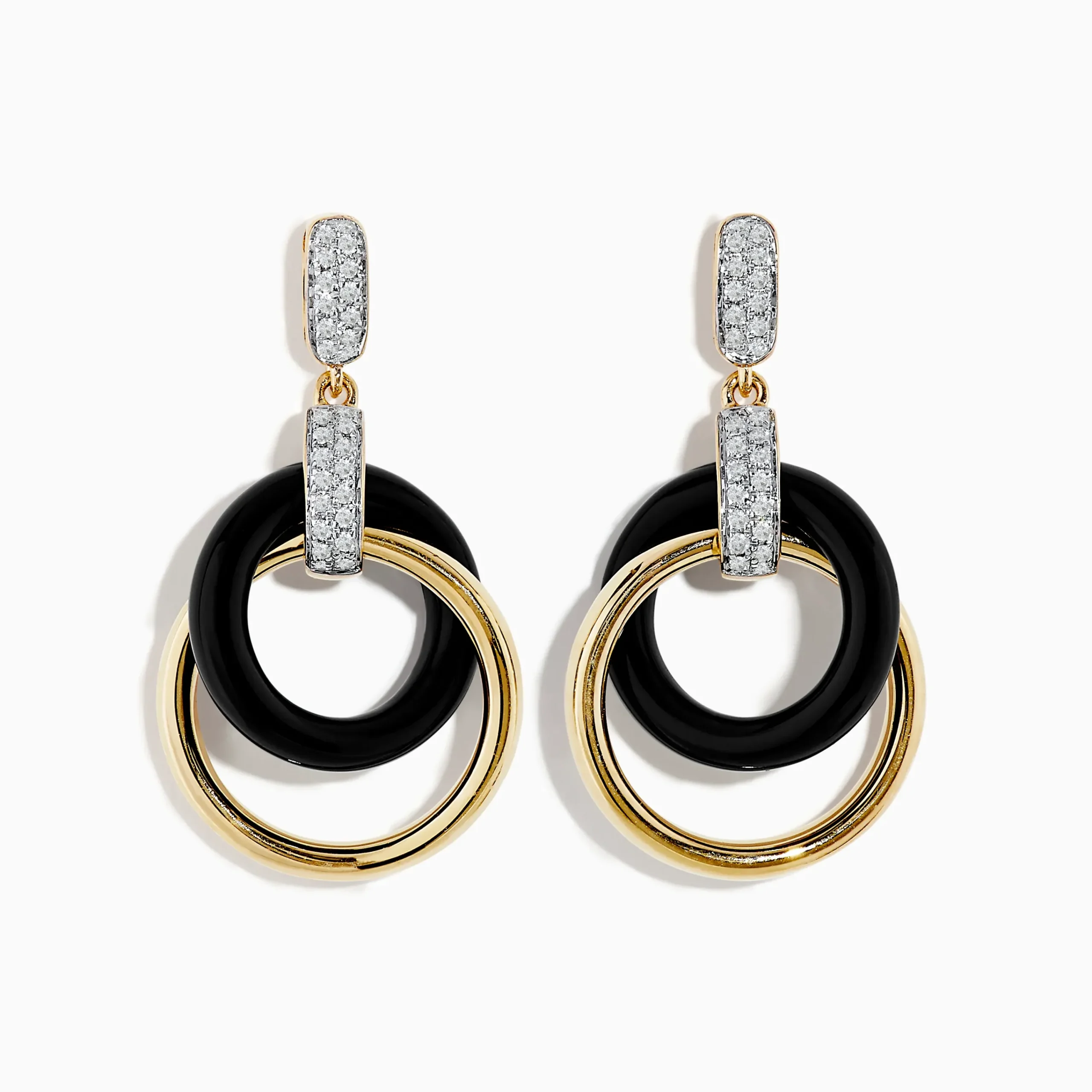 Effy Eclipse 14K Yellow Gold Diamond and Onyx Crossover Drop Earrings