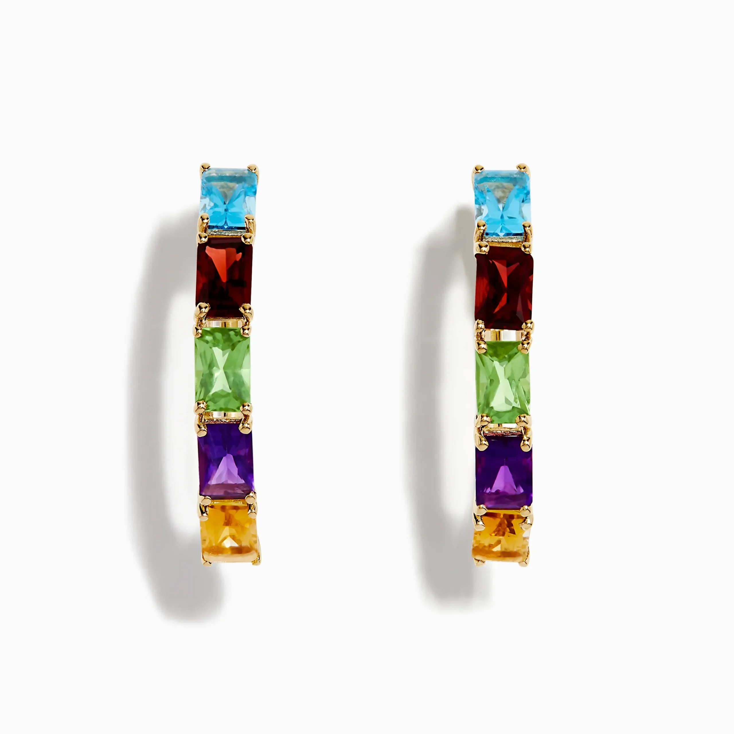 Mosaic 14K Yellow Gold Multi Color Gemstone Hoop Earrings