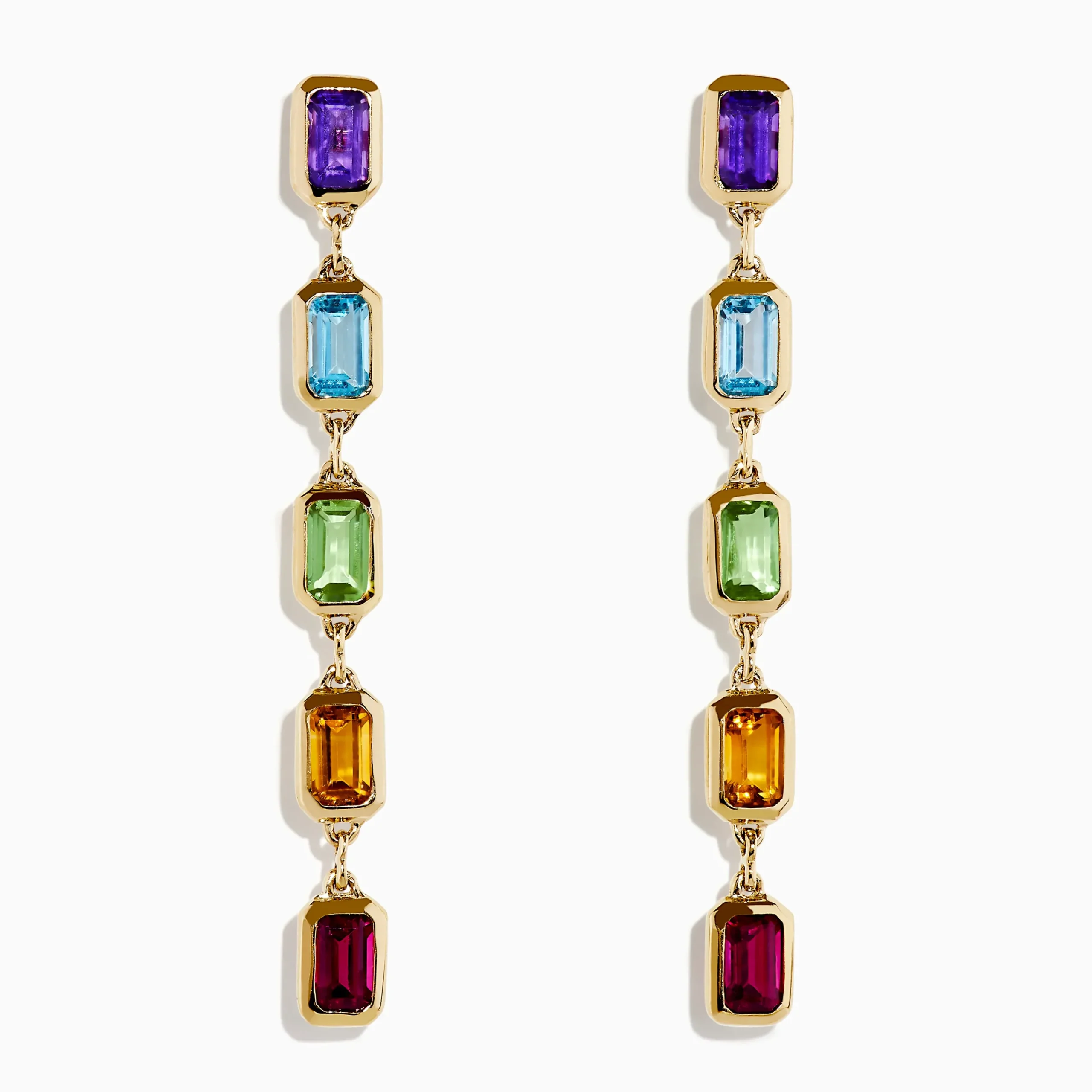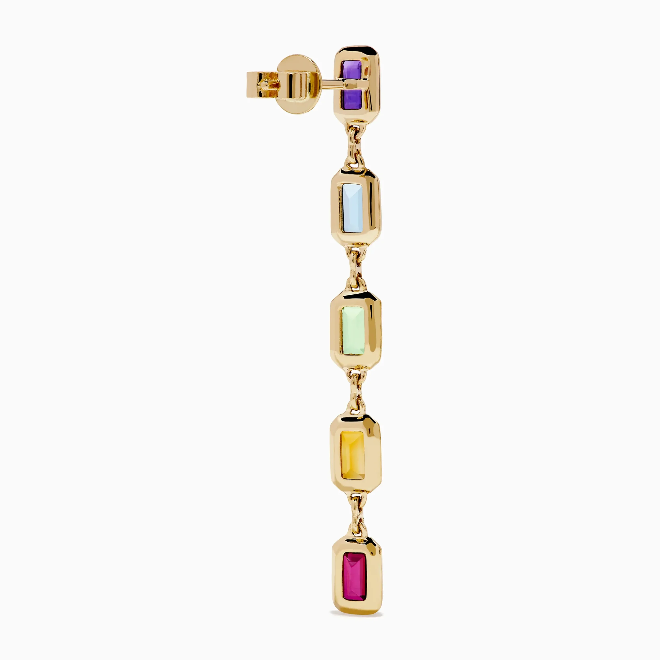 Mosaic 14K Yellow Gold Multi Color Linear Drop Earrings