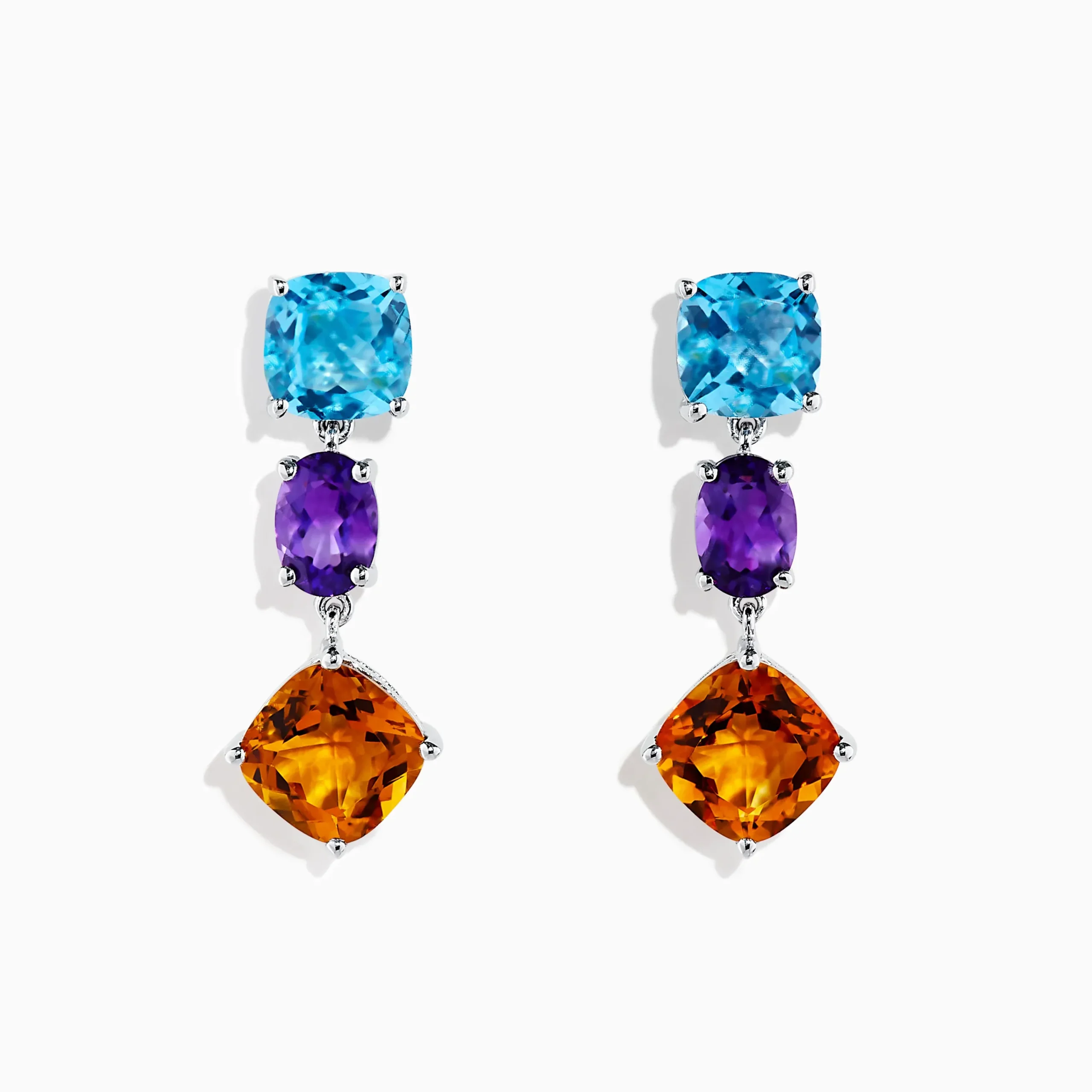 Mosaic 925 Sterling Silver Multi Gemstone Earrings