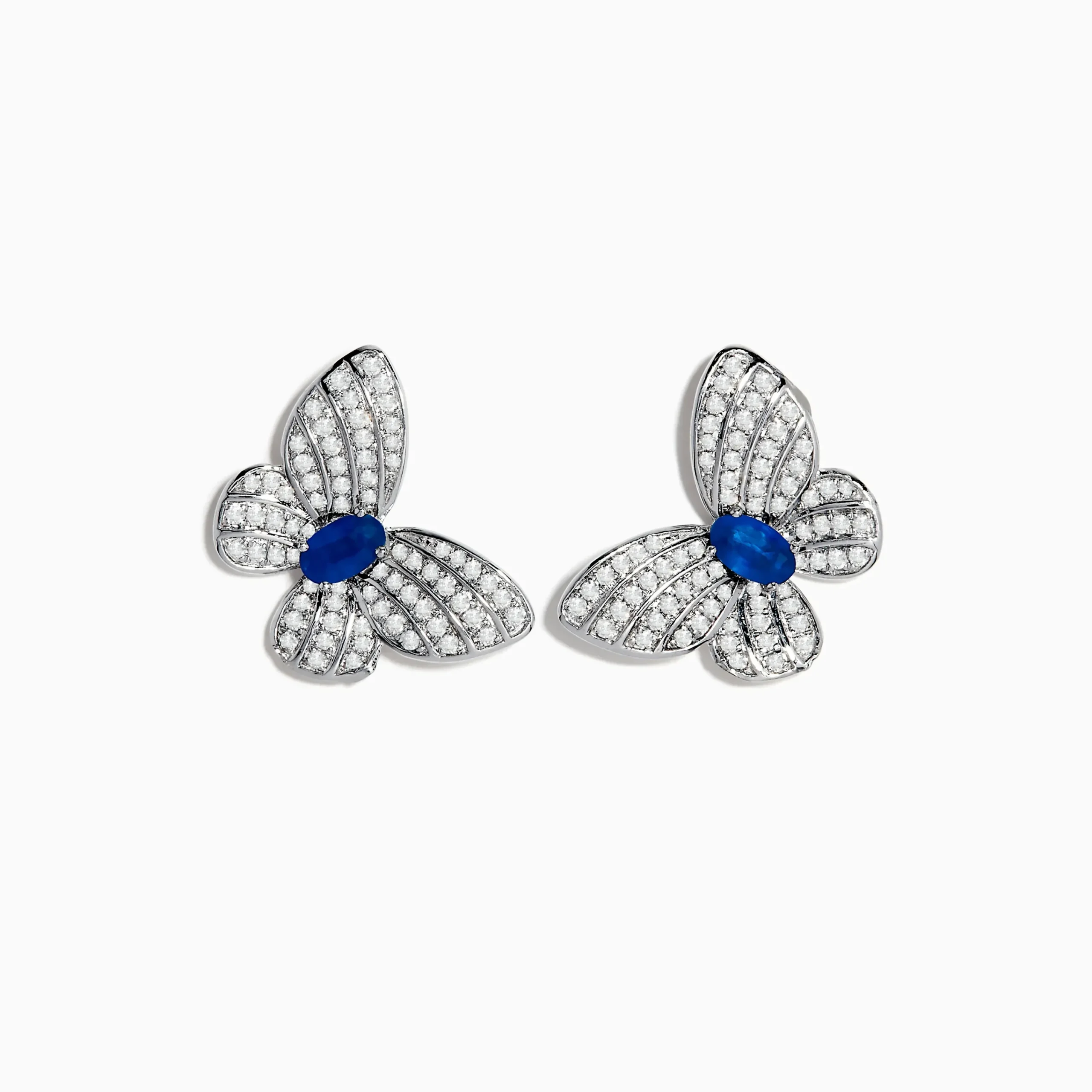 Effy Nature 14K White Gold Sapphire and Diamond Butterfly Earrings