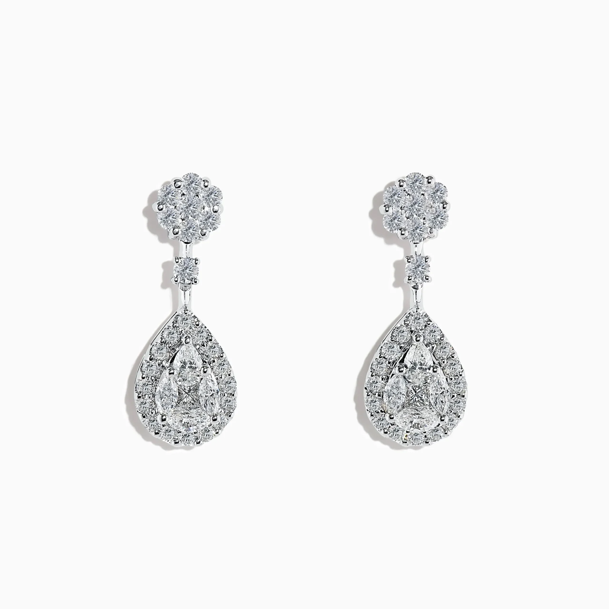 Metal:14K Gold Metal Color:WhiteStone: Multi Shape Diamond 1.45Effy Pave Classica 14K White Diamond Earrings