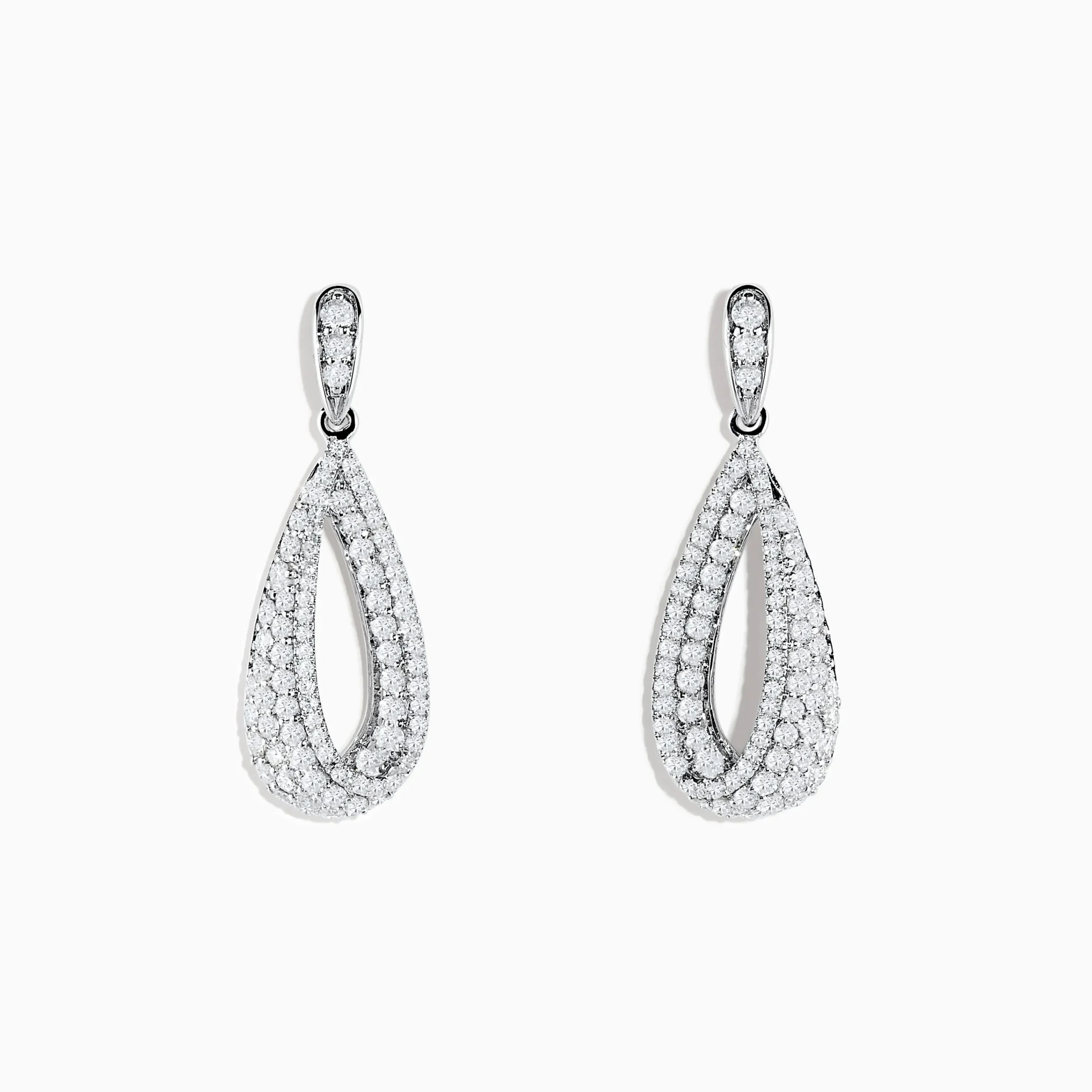 Metal:14K Gold Metal Color:WhiteStone: Round Diamond 1.29Pave Classica 14K White Gold Diamond Drop Earrings