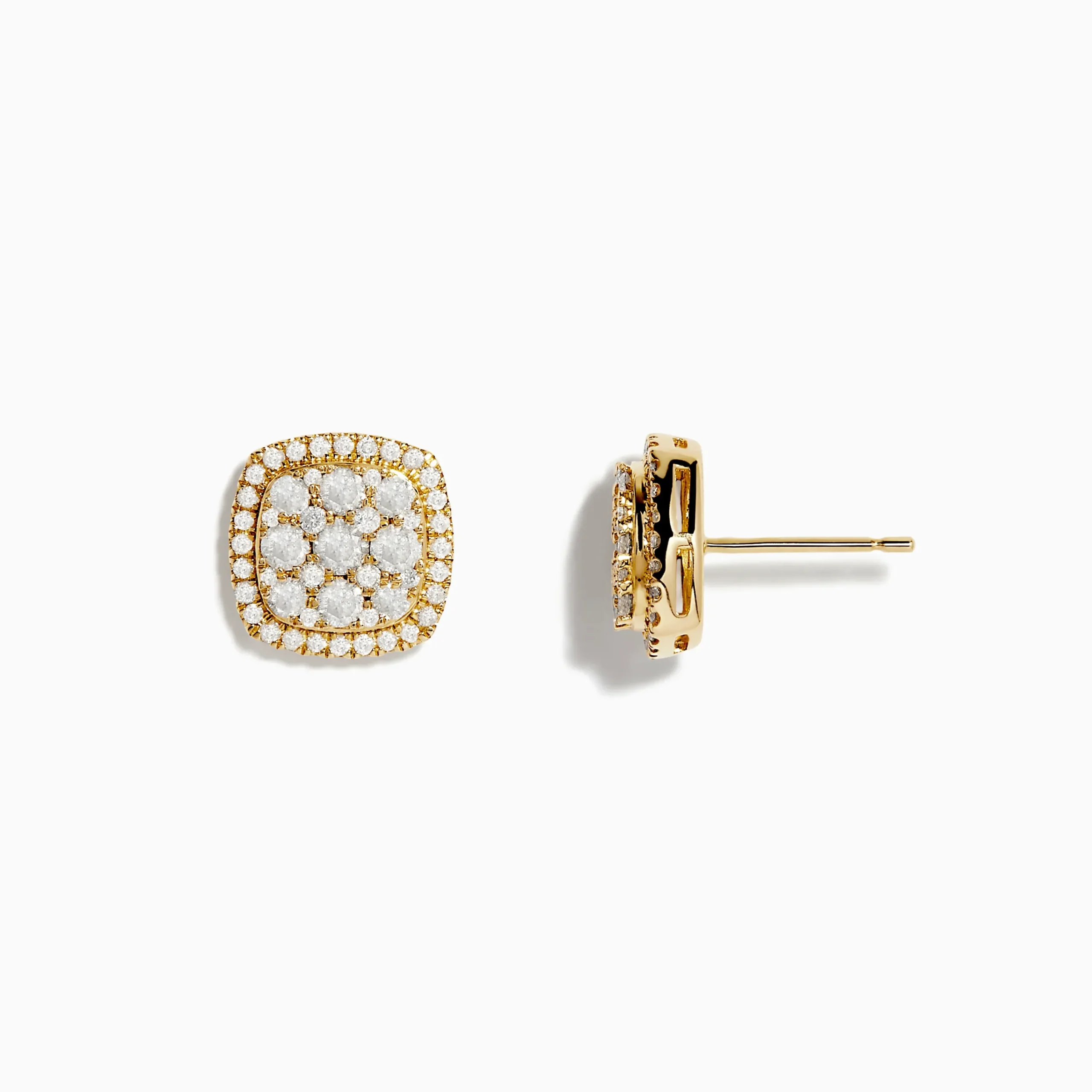 Effy Pave Classica 14K Yellow Gold Square Diamond Stud Earrings 0.97 TCW