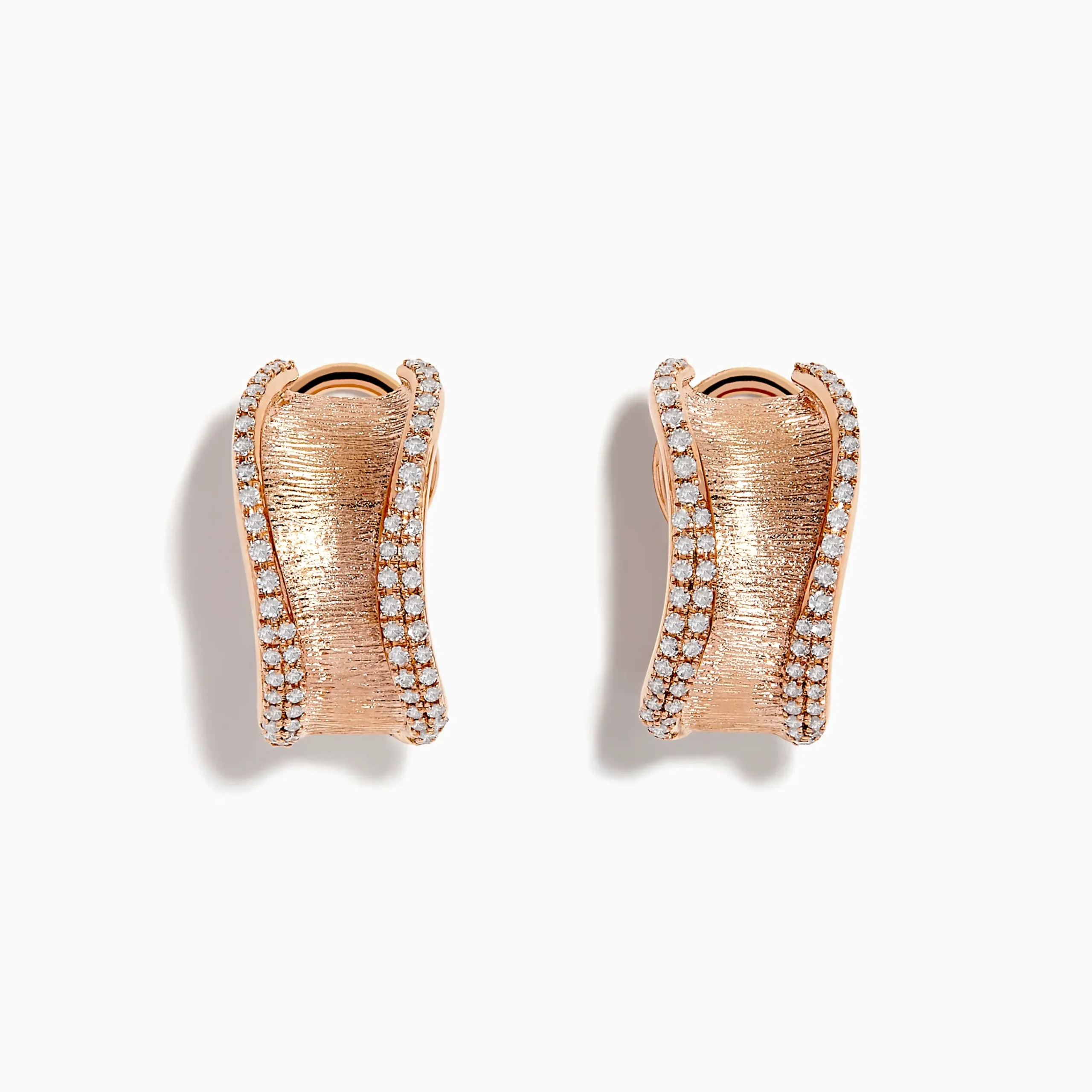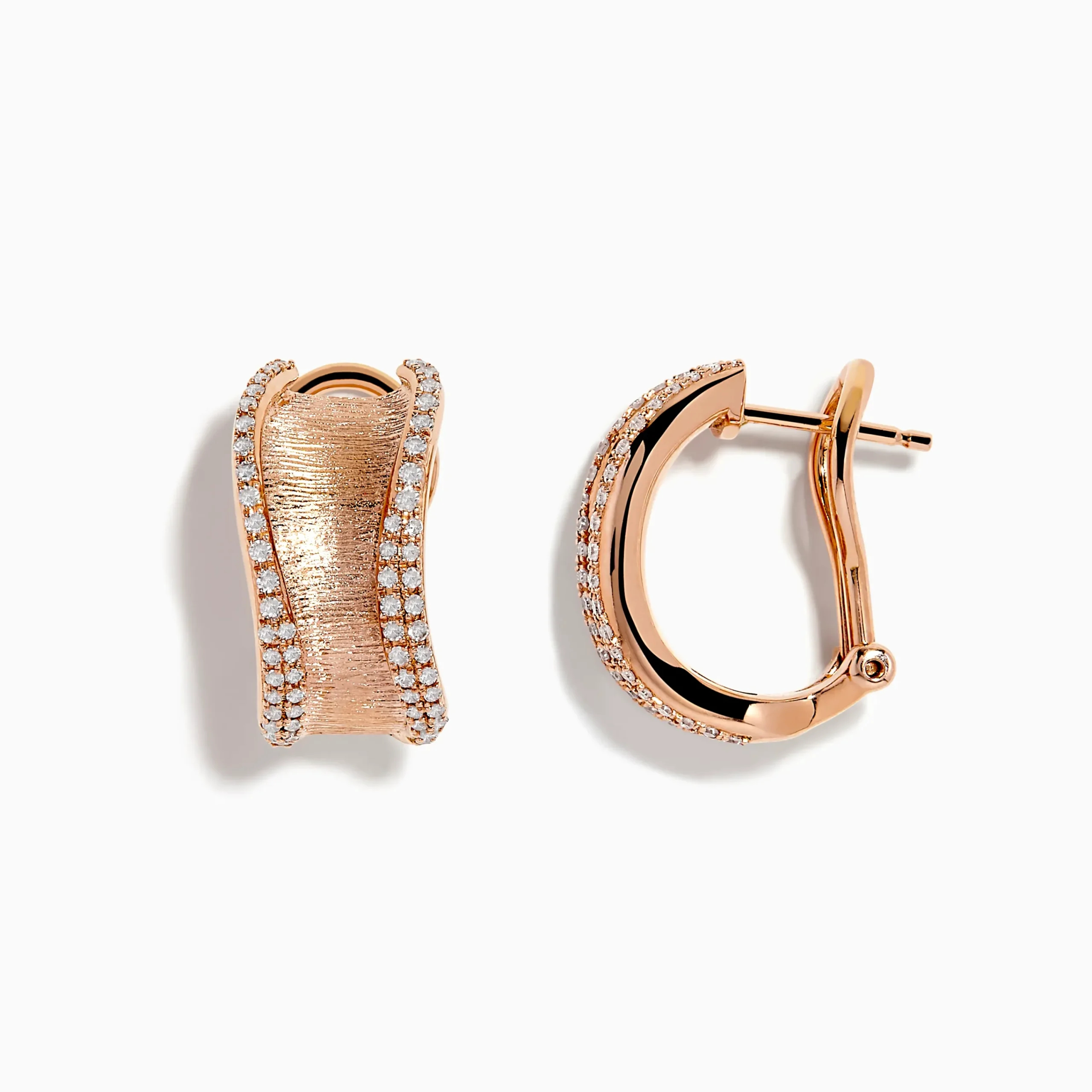 Effy Pave Rose 14k Rose Textured Gold 5/8″ French Clip Diamond Earrings
