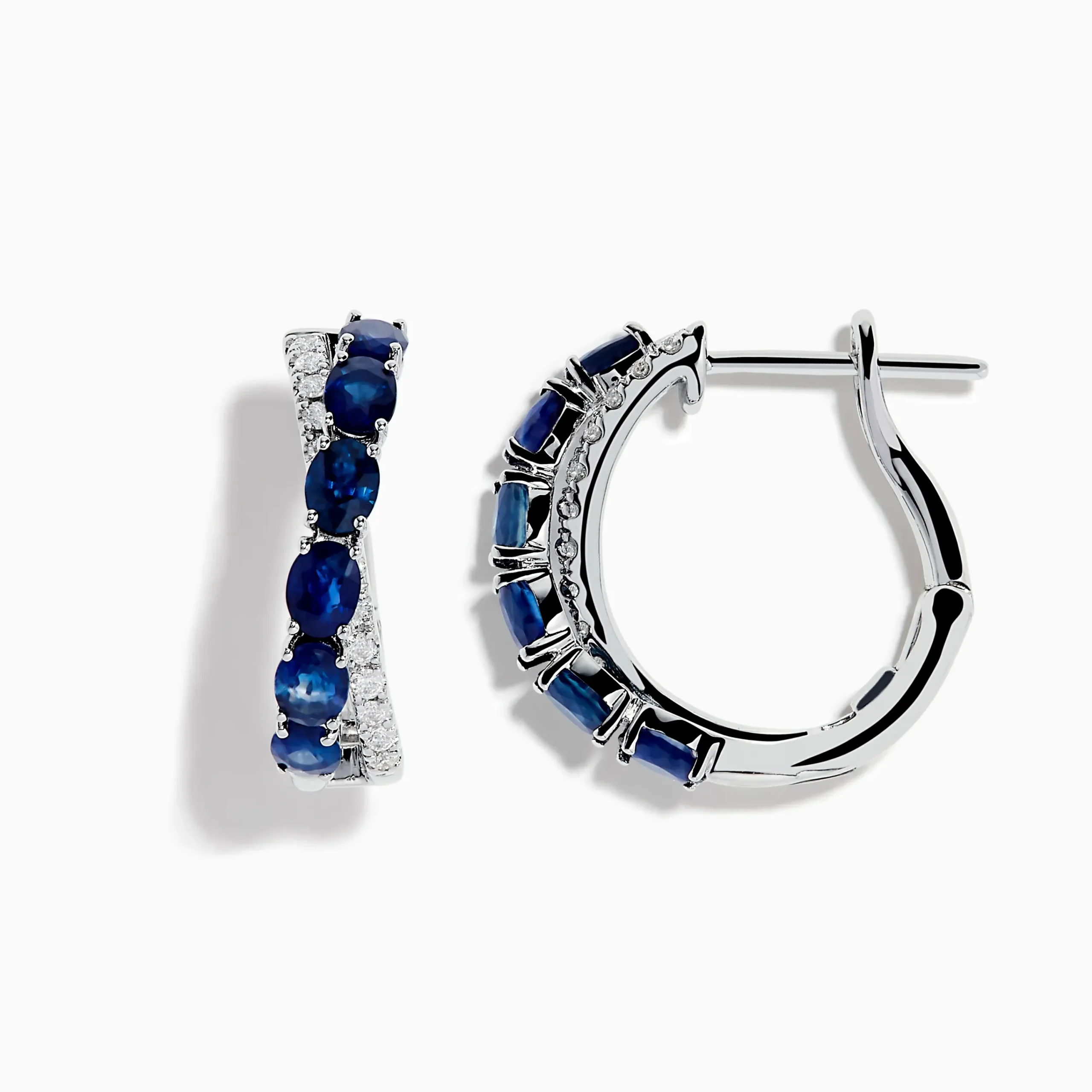 Effy Royale Bleu 14K White Gold Blue Sapphire and Diamond Hoop Earrings