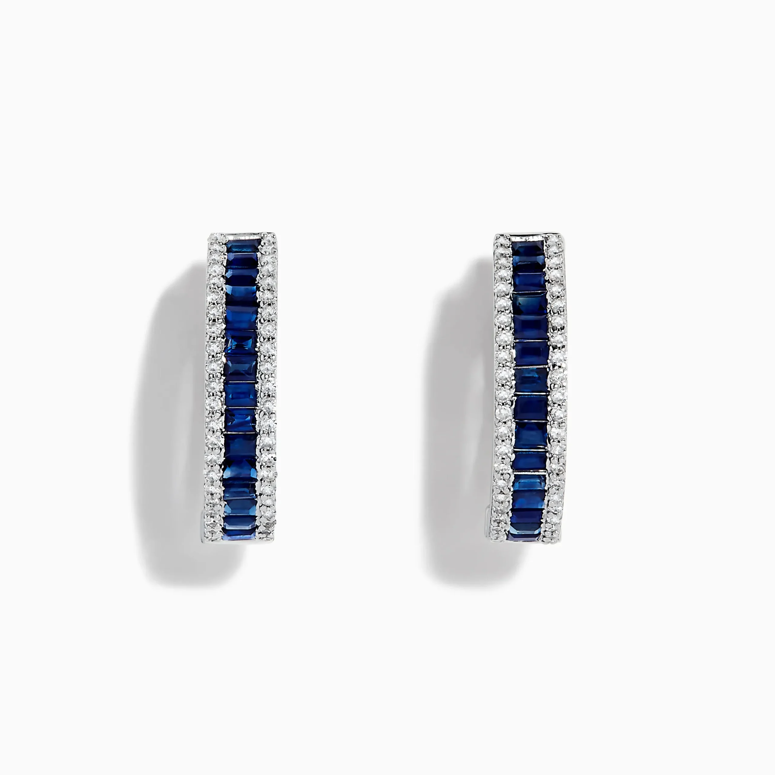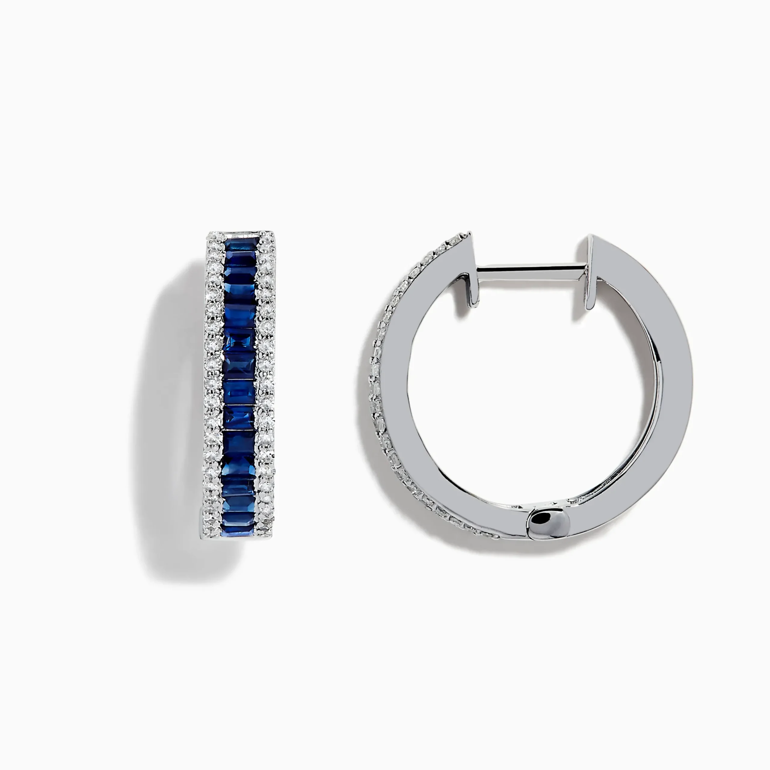 Effy Royale Bleu 14K White Gold Blue Sapphire and Diamond Hoop Earrings