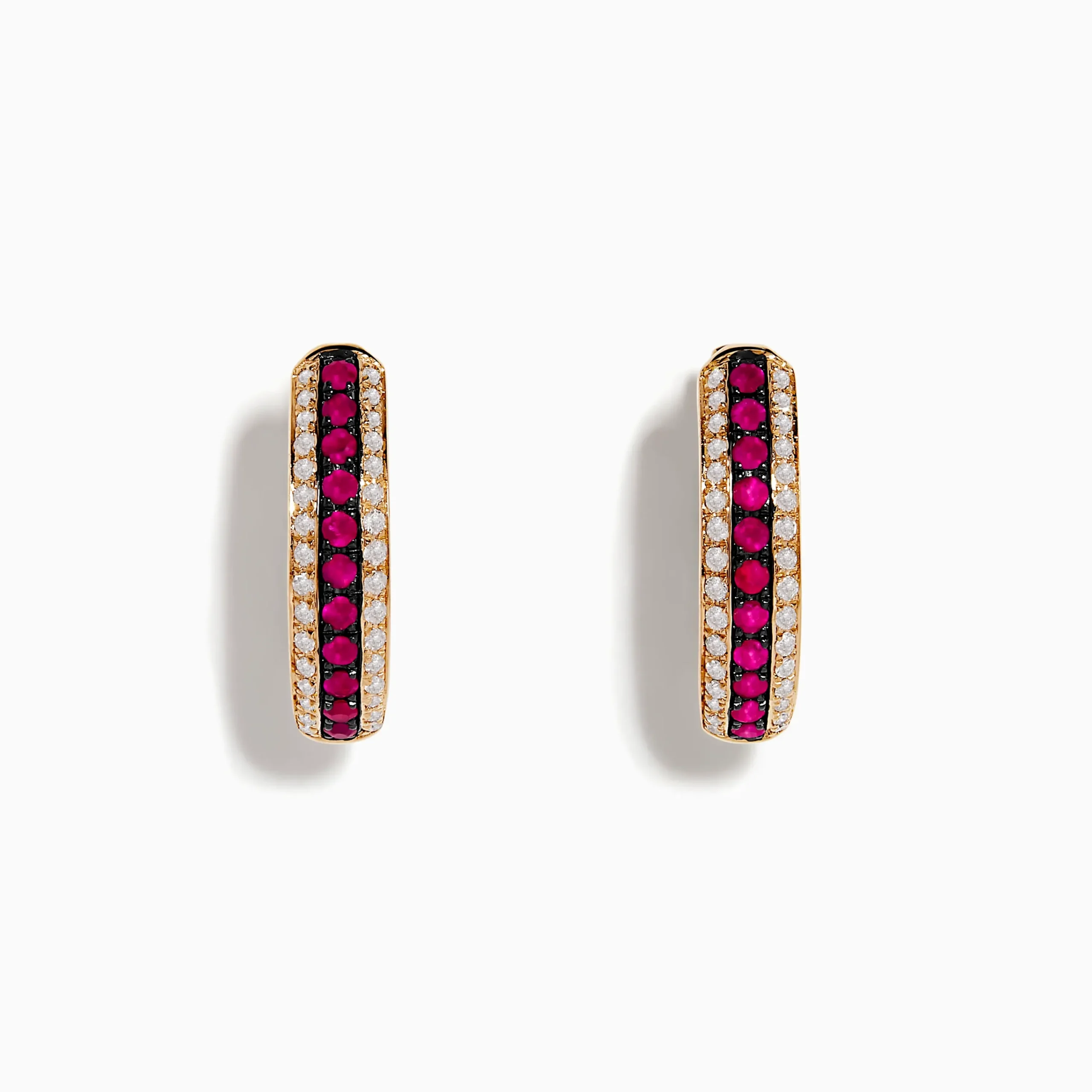 Effy Ruby Royale 14K Rose Gold Ruby and Diamond Hoop Earrings, 0.55 TCW