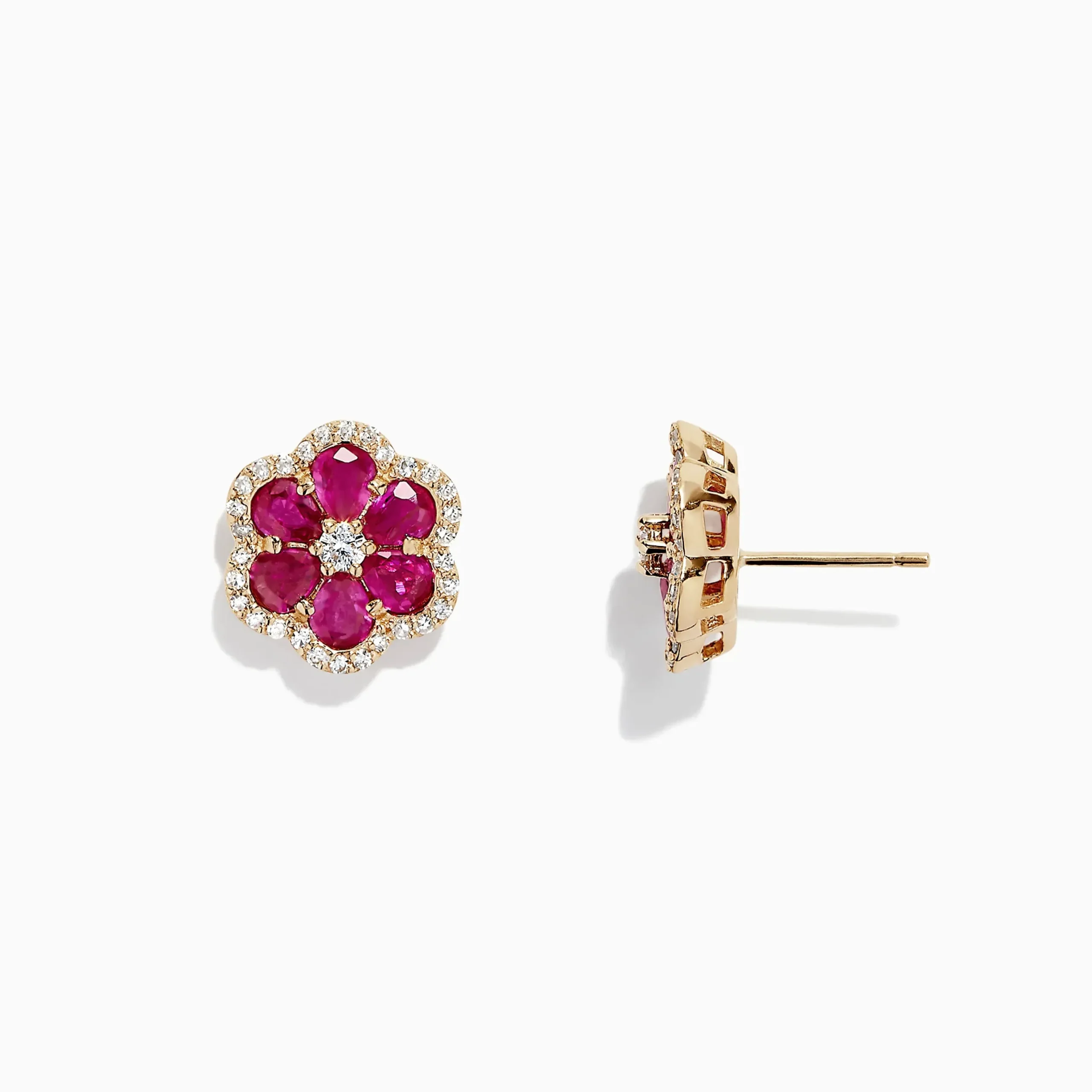 Effy Ruby Royale 14K Yellow Gold Ruby Flower Stud Earrings, 3.18 TCW