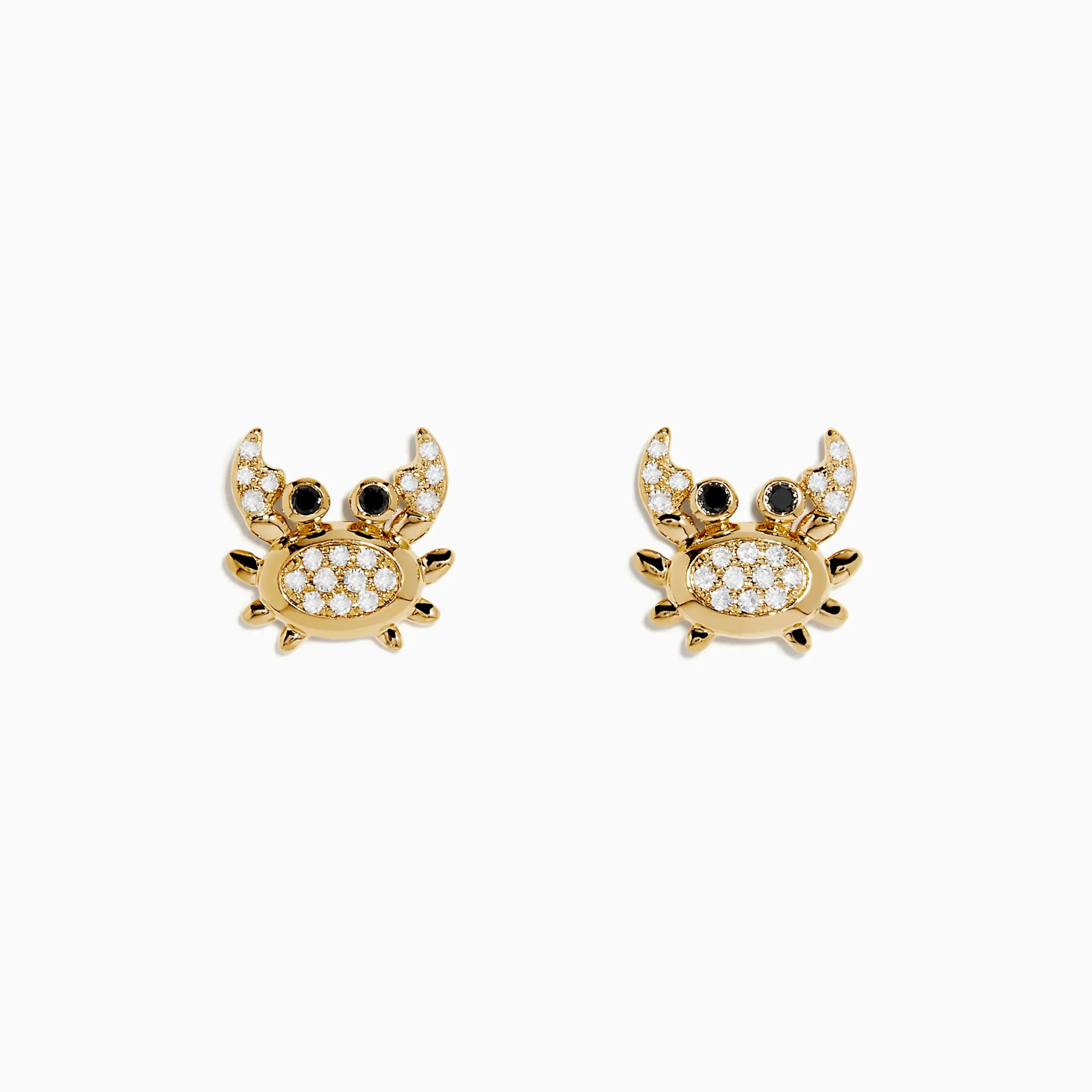 Seaside 14K Yellow Gold White & Black Diamond Crab Earrings