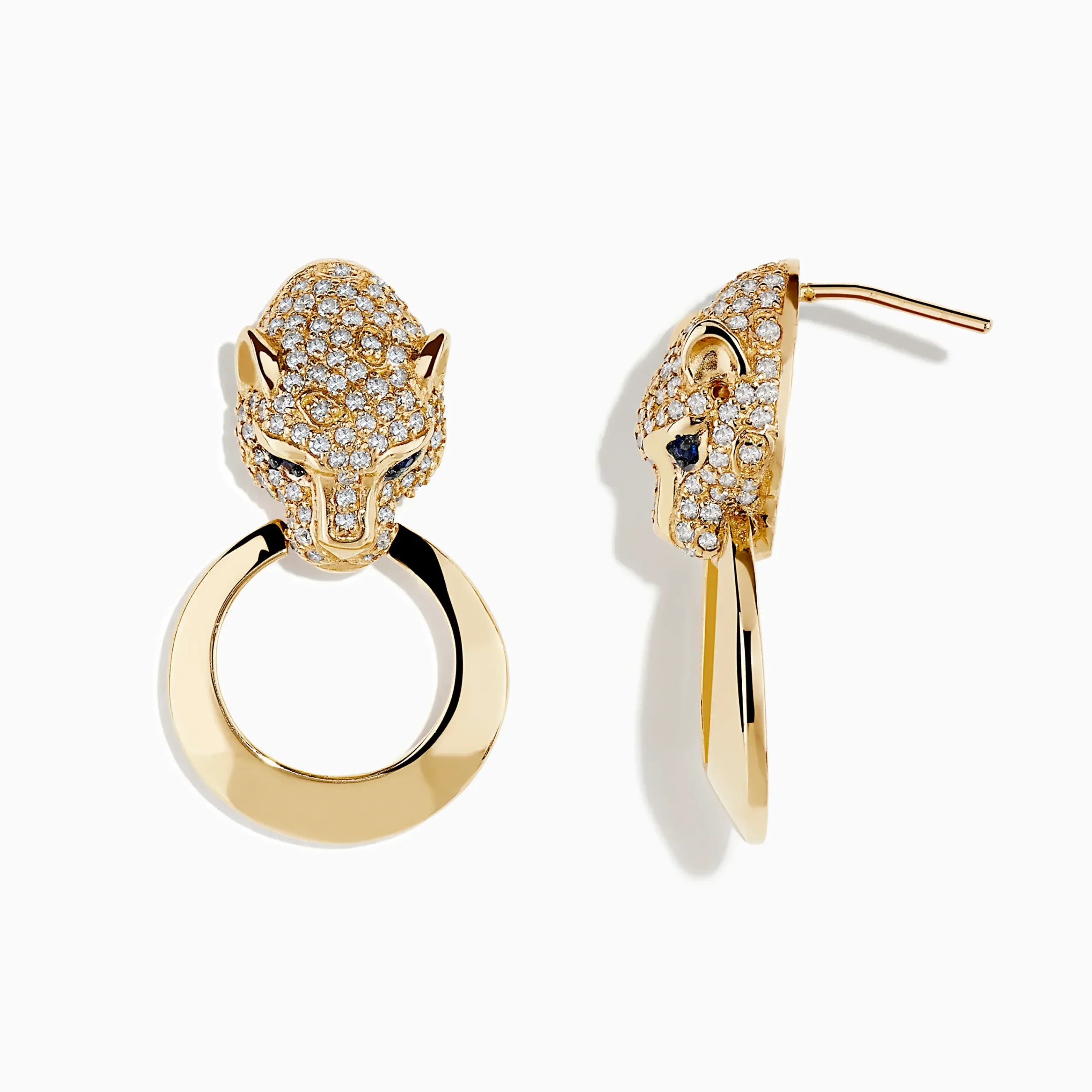 Effy Signature 14K Yellow Gold Sapphire and Diamond Panther Earrings