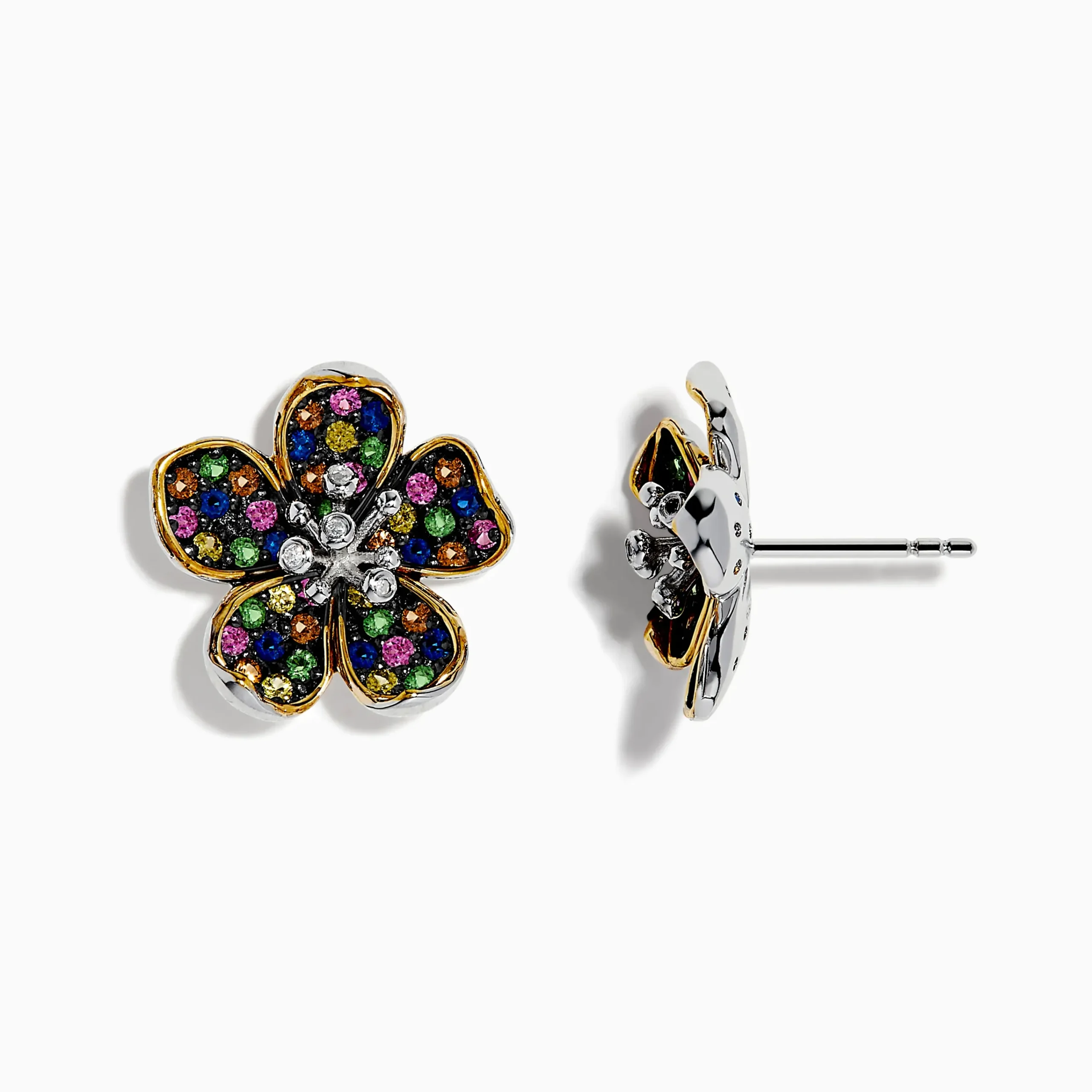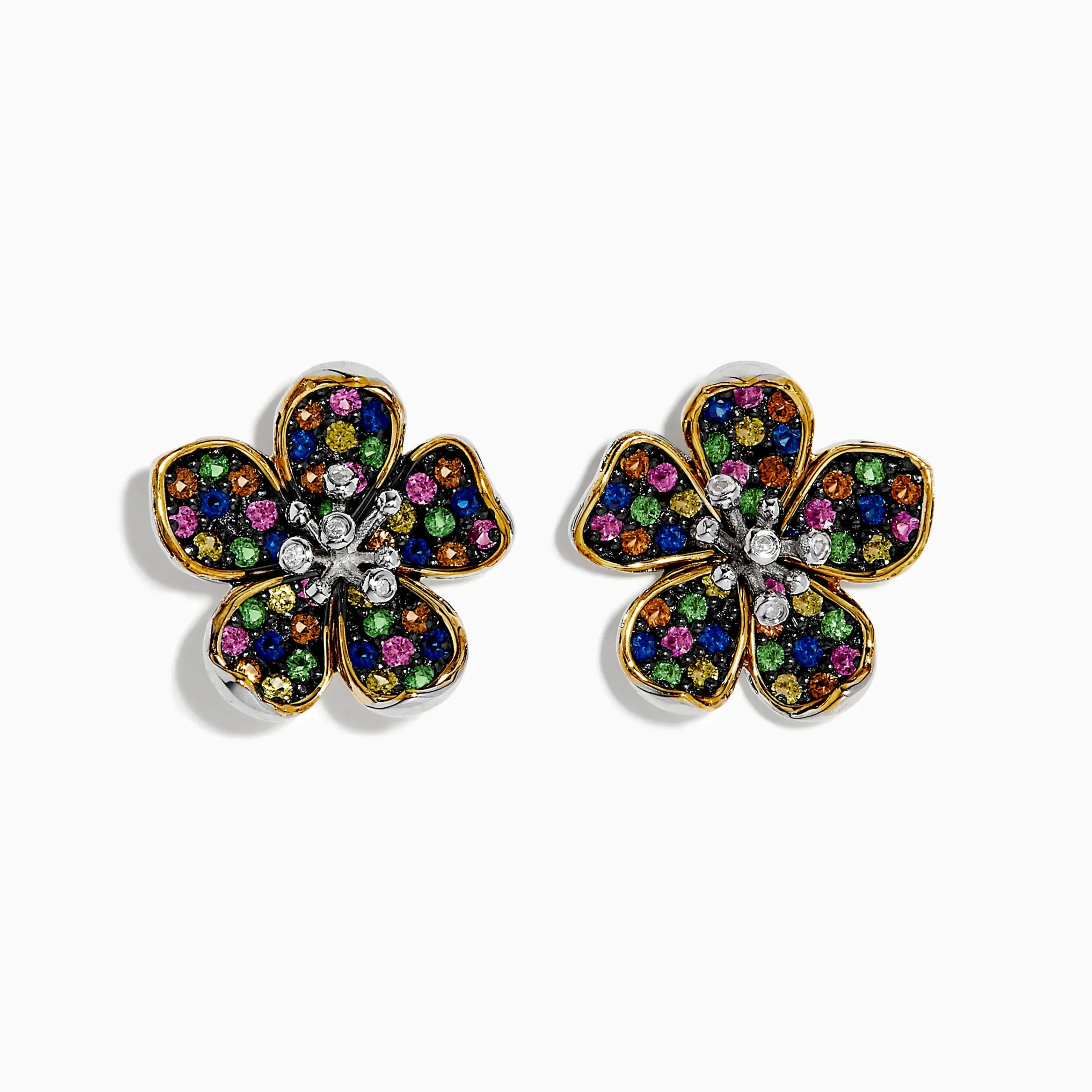 Effy Splash Sterling Silver Diamond, Sapphires & Tsavorite Flower Earrings