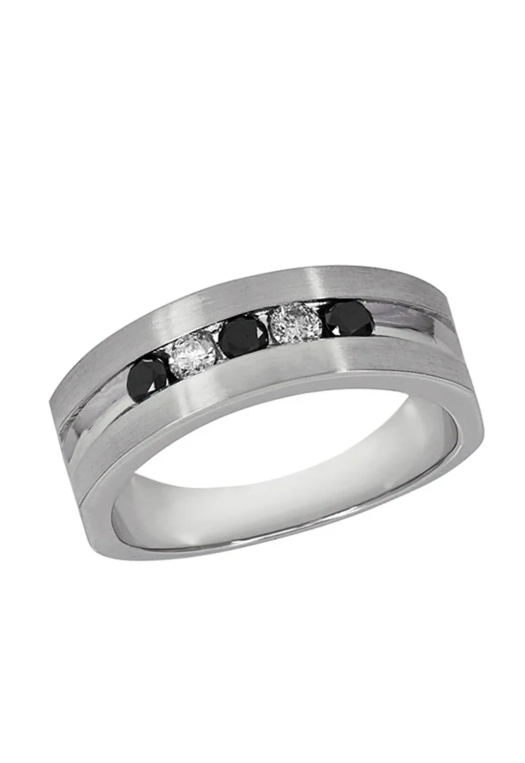 Effy Men’s 14K White Gold Black and White Diamond Ring, 0.49 TCW