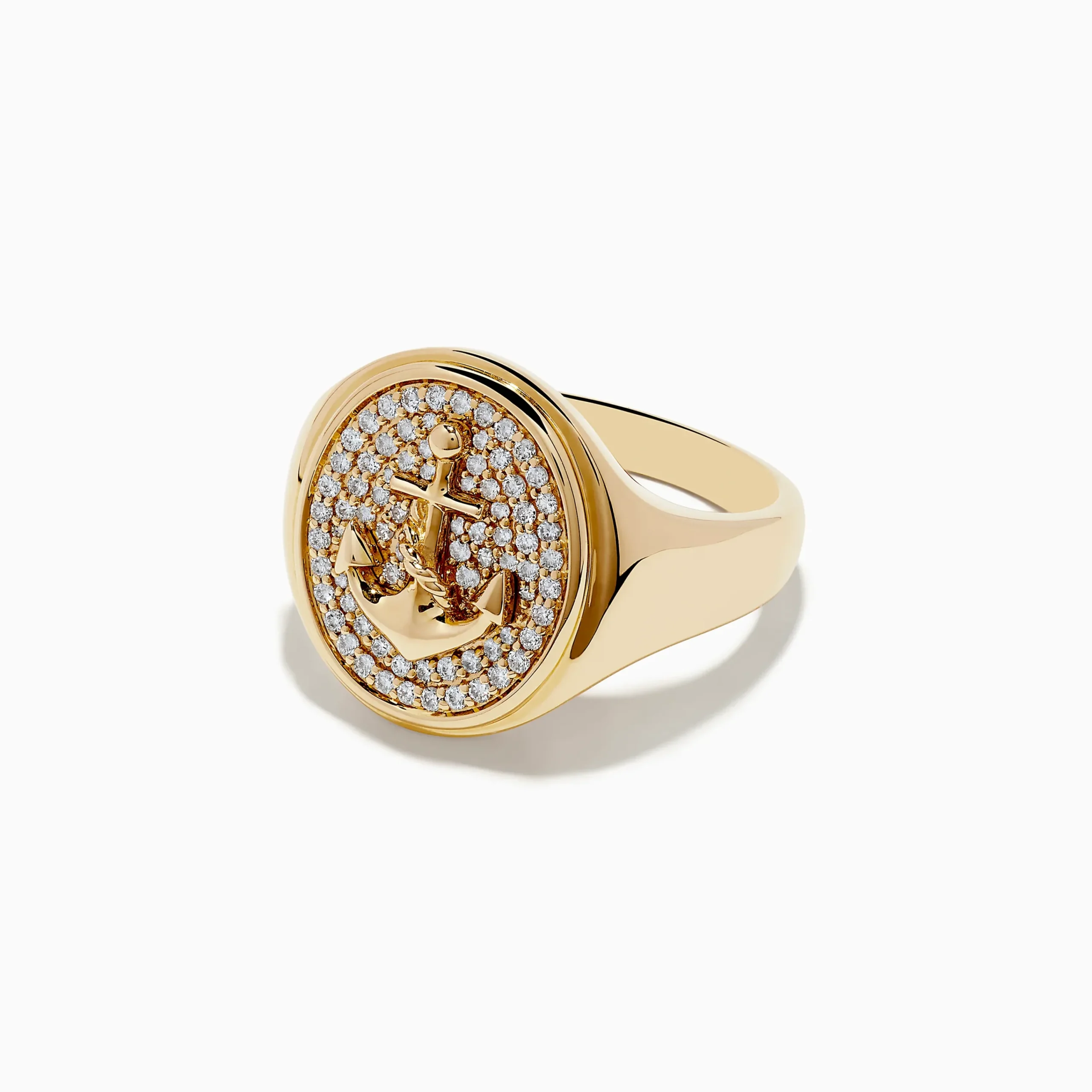 Effy Men’s 14K Yellow Gold Diamond Anchor Ring